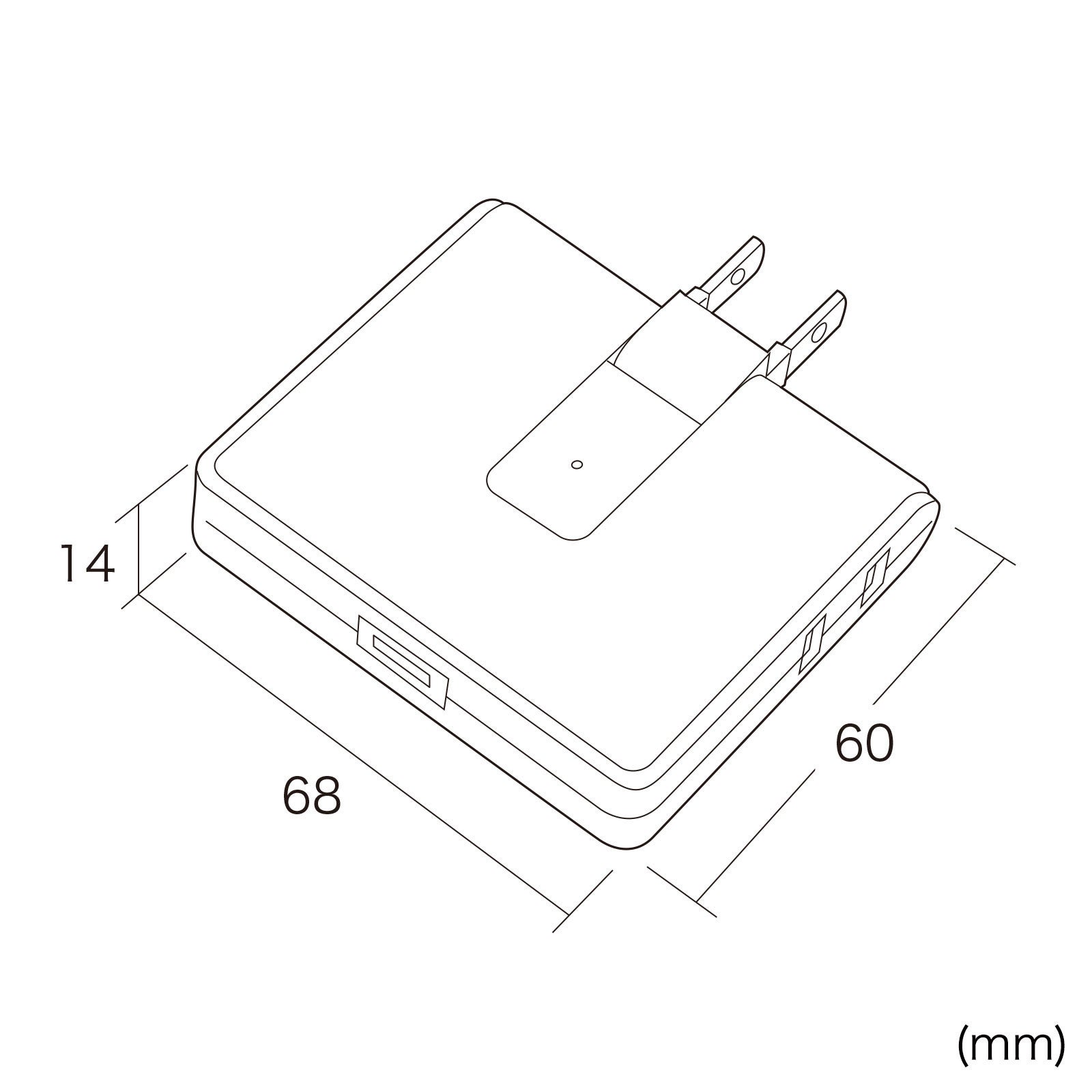 本体サイズは幅68mm×奥行き14mm×高さ60mmで、重量は58gです。持ち運びに便利な薄型コンパクトサイズなので、移動中の待合場所や出張先などでの使用に便利です。