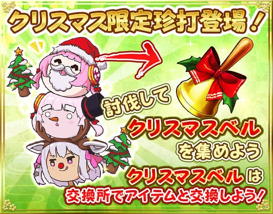 討伐イベント『サンタカーニバル』では今月限定で特別なボスが登場!?討伐して獲得できるアイテム「クリスマスベル」を集めて、将姫を限界突破できる「宝玉」などの豪華アイテムと交換しよう♪