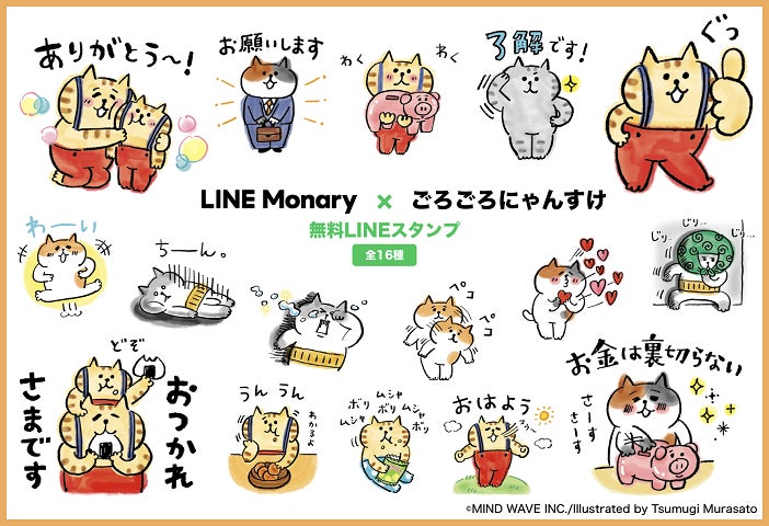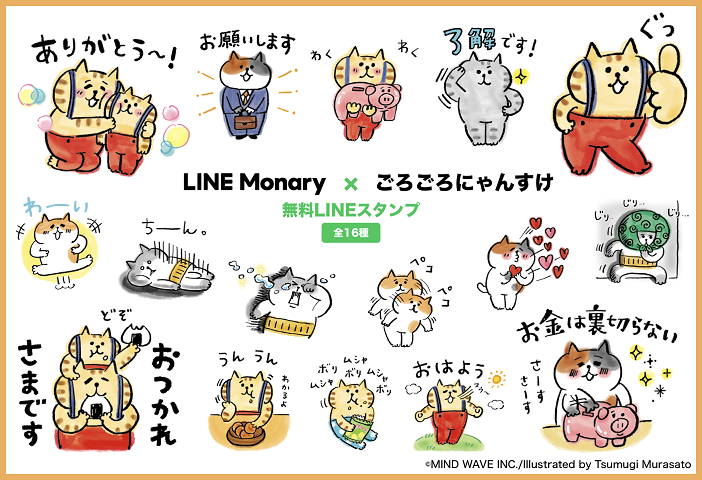 ■「LINE Monary」LINE公式アカウントの友だち追加で「ごろごろにゃんすけ」限定スタンプをプレゼント