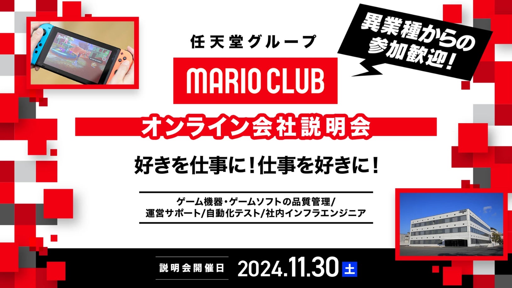【ゲーム業界】11/30(土)「任天堂グループのマリオクラブ㈱ キャリア採用オンライン会社説明会」を開催!IT業界やサービス業界などの異業種、他業界からのご応募も大歓迎!!