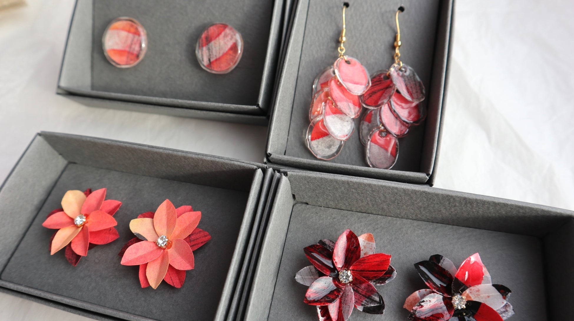 青森県で、不要品から「ねぷた」をつくるというアップサイクルを実現し、その時の「ねぷた絵」をさらにアップサイクルして、ブローチなどのアクセサリーに生まれ変わらせました。価値あるものをさらに長く使用していただけるよう制作しています。夏の浴衣とのコーディネートやお土産にも最適です。