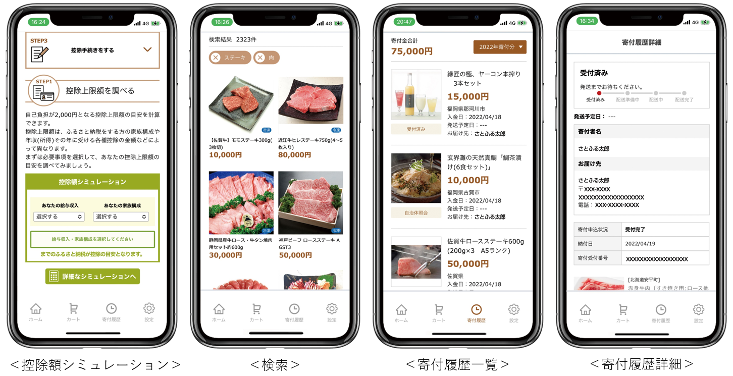 「LINEでふるさと納税」※5は、お礼品検索やふるさと納税の寄付、寄付履歴の確認、控除額シミュレーションを利用できます。さとふるサイトと連携することで、さとふるサイトから寄付金控除に関する証明書発行など各種機能が利用できるほか、ワンストップ特例制度の電子申請が可能※6になるなど、控除手続きを簡単に行うことができます。8月末には、LINE公式アカウントのトーク機能を通じた配送状況の通知や、ユーザーに応じてお礼品をおすすめするサービスの開始を予定しています。さらに、今後はオンラインとオフラインを融合させたユーザー体験として、訪問先で寄付申し込みをするとその場でアクティビティなどの「体験型ふるさと納税」を楽しめるサービスの提供など、地域とLINEユーザーのつながりを深める機能拡張を検討しています。