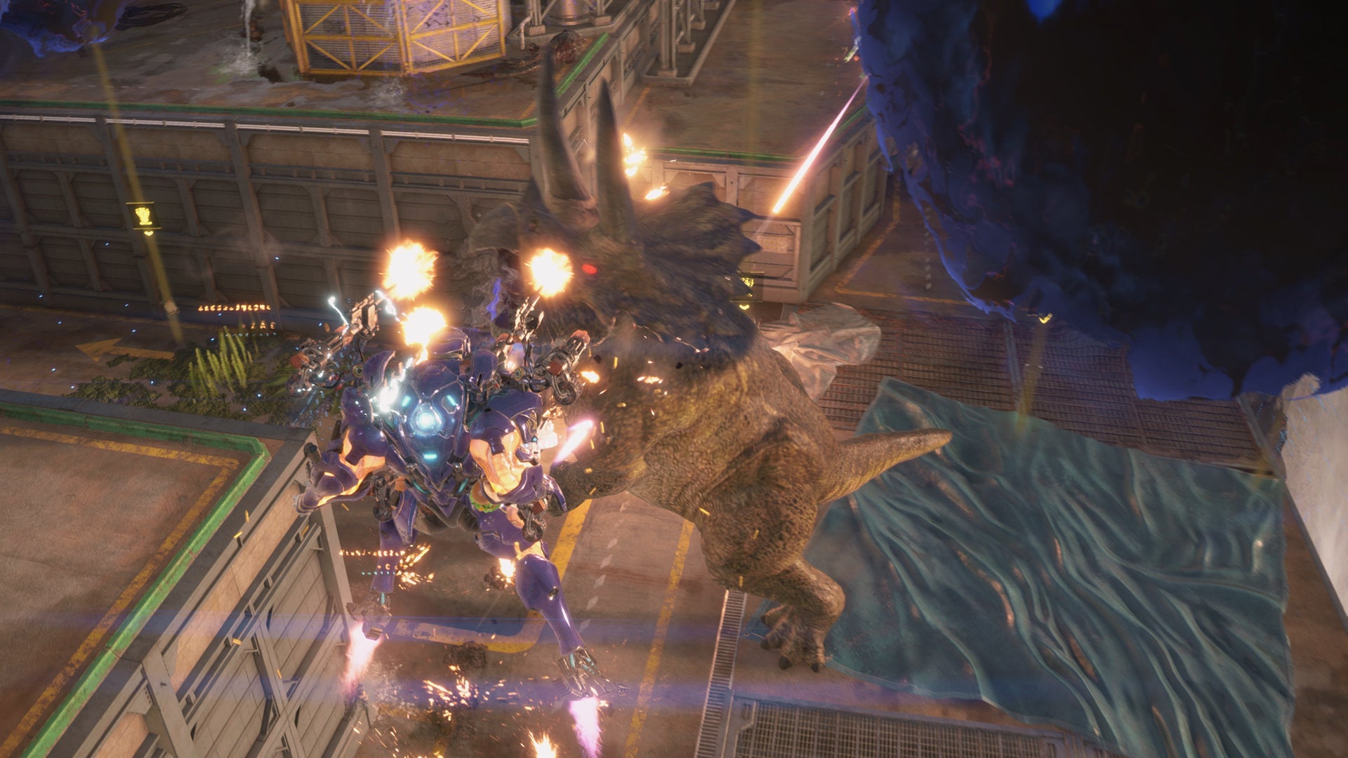 歴史上最凶の「恐竜大軍勢」を人類最強の「エグゾスーツ」で打破するチーム対戦型マッシヴアクション。