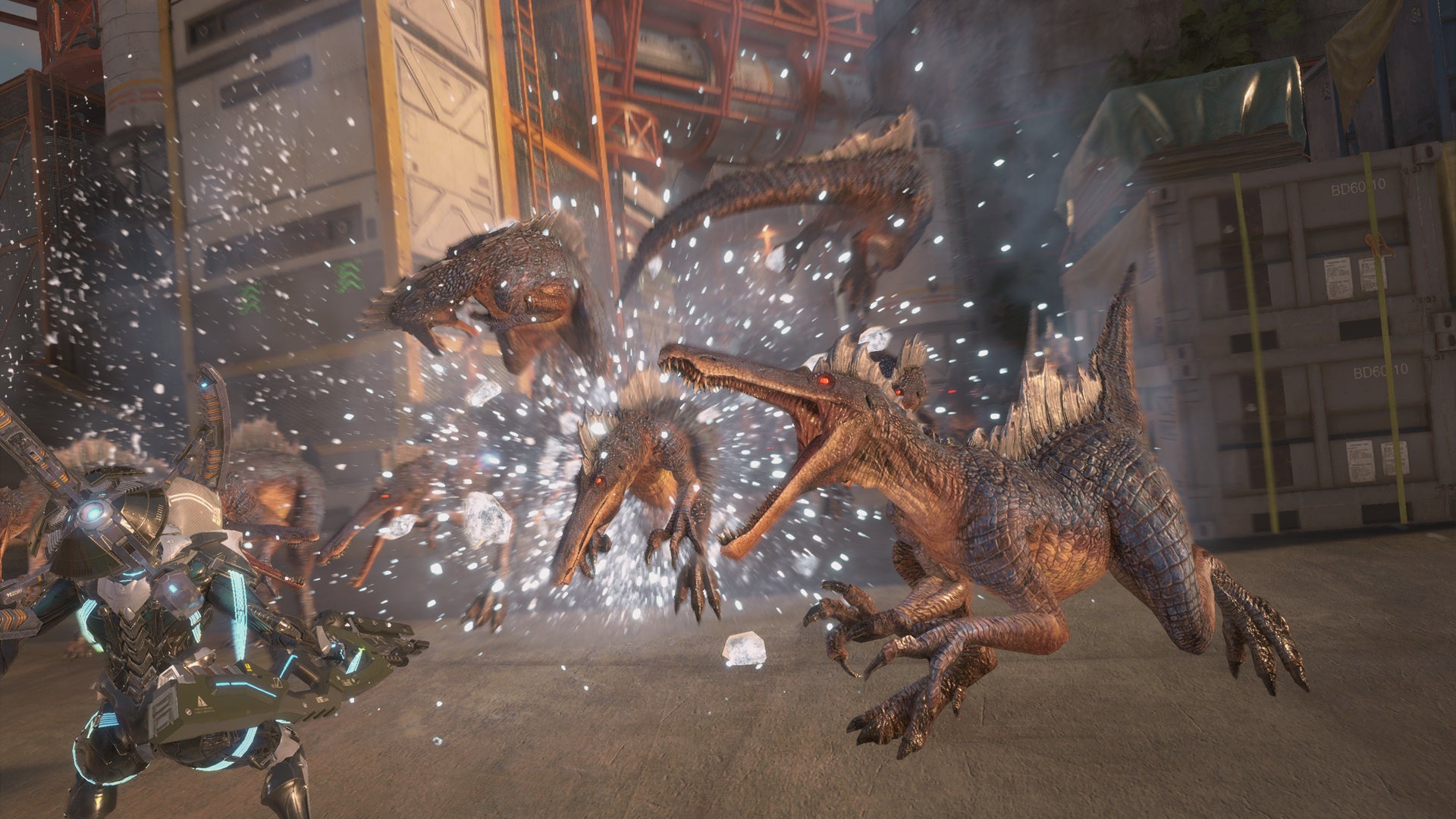 本作は、「ロール」という役割に特化した最新鋭パワードスーツ「エグゾスーツ」を纏い、圧倒的な量で押し寄せる「恐竜災害」に立ち向かう。メインモード「ディノサバイバル」は、5人のプレイヤーが1つのチームとなりチーム同士で競い合う5人vs5人の「対戦型PvE」で、どちらのチームが先に新世代AI「リヴァイアサン」から提示される全てのミッションをクリアするかを競う。時には対戦チームを直接攻撃して倒したり、時には共闘したりしながら、いち早くミッションを達成しよう。プレイヤーのゲーム進行状況に応じてミッションが変化するので、同じフィールド、同じミッションでも異なる体験が待っている。