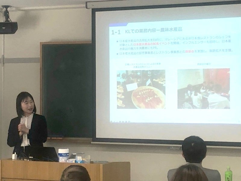 また、受講生約20人のうち、アセアン諸国出身の学生や同地域へ留学経験を持つ学生は、川本係長による報告を通じて、日本製品の販売戦略について、自国や留学先での状況を踏まえながら理解を深めていました。