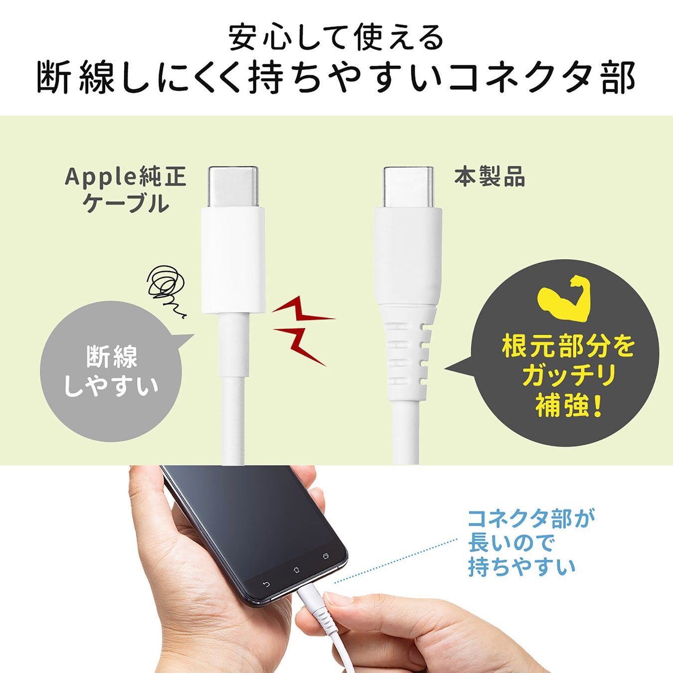やわらか USB Type-Cケーブル 絡まない PD100W CtoC タイプC USB2.0 電源ケーブル 1m ホワイト