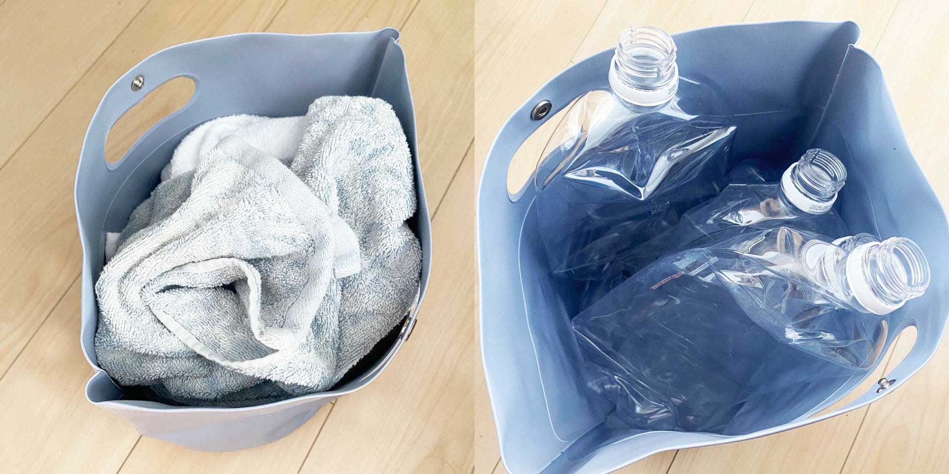 ランドリーバッグとして使ったり、空のペットボトルなど少し湿気のあるもののゴミ箱としてふだん使いするのも便利です。