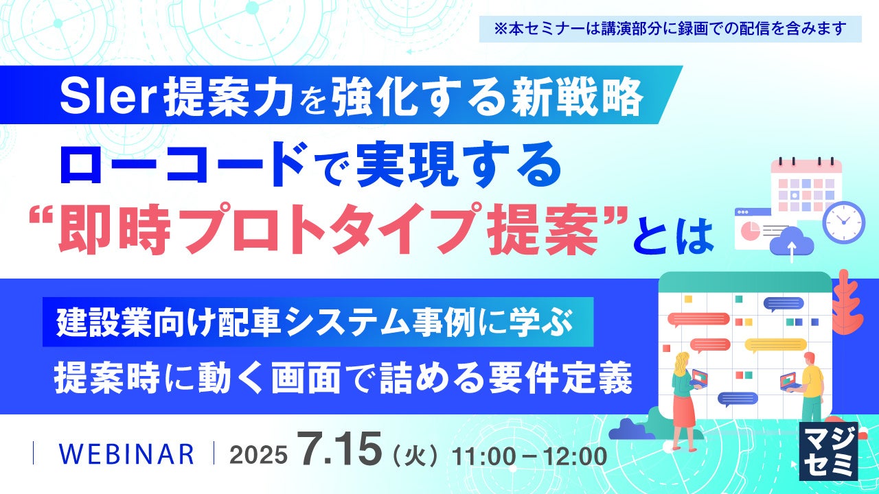 マジセミ株式会社は「SIer提案力を強化する新戦略: ローコードで実現する“即時プロトタイプ提案”とは」というテーマのウェビナーを開催します。