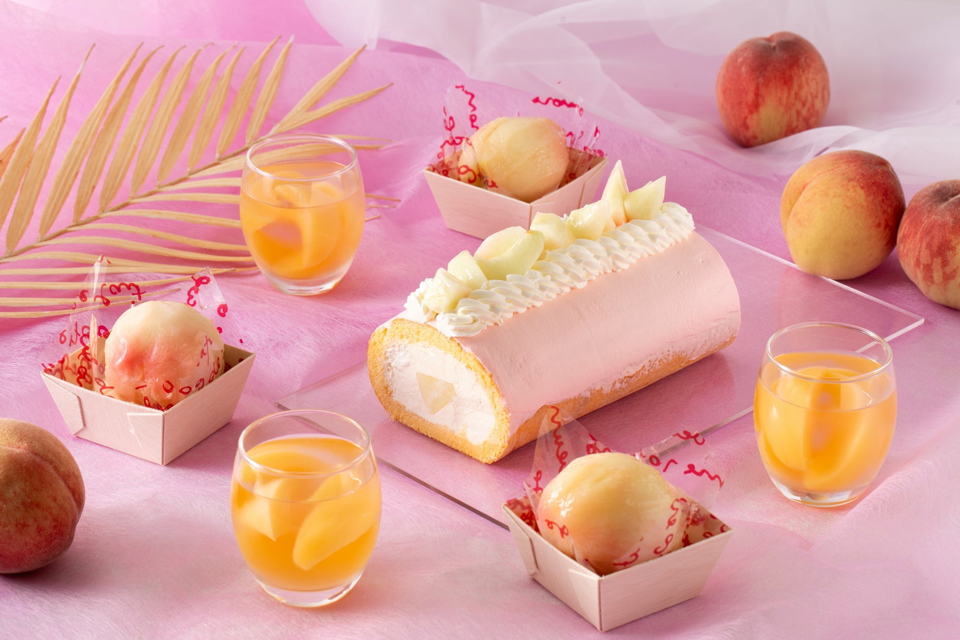 ペストリーショップでは、初夏に爽やかな桃の味わいを楽しめる「もものゼリー」やふわふわのロールケーキ生地に桃の果肉と北海道根釧の生クリームを巻き込んだ「もものロールケーキ」など、テイクアウト商品を取り揃えています。