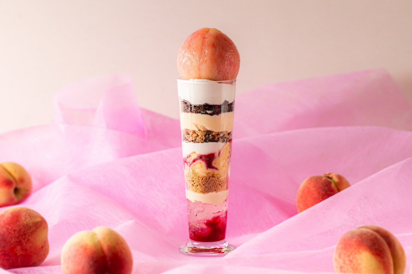 また、1日5食限定のパフェは、コンポートした桃を丸ごとトップに飾り、バニラクリームや北海道産生クリーム、食感のアクセントとなるクッキーなど、15層の構成で仕上げた贅沢な一品です。