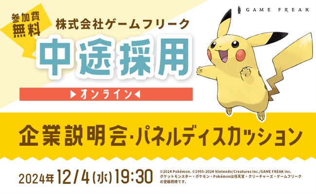【ゲーム業界】12/4(水)ゲームフリーク 中途採用オンライン企業説明会・パネルディスカッションを開催!プランナー・2D/3Dデザイナー・プログラマなど全50ポジションで積極採用!!