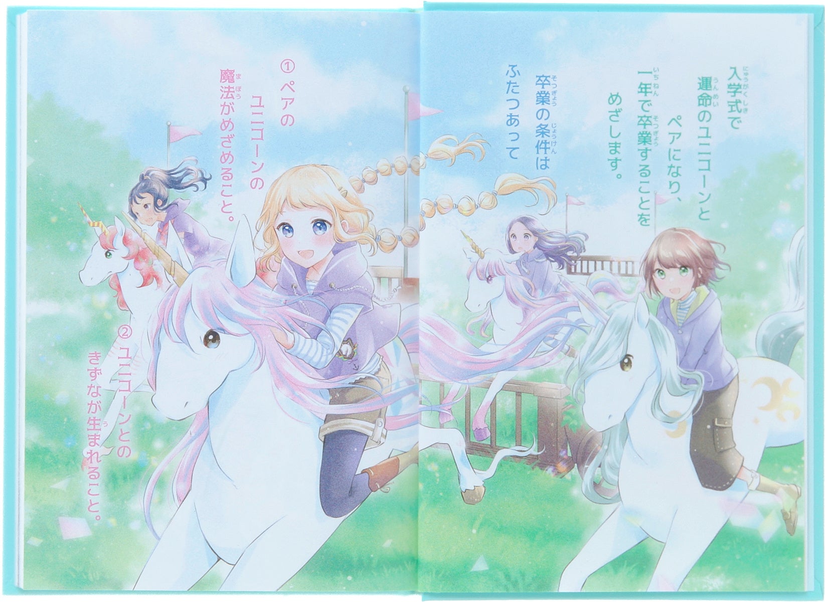 生徒たちはそれぞれ、入学式で「運命のユニコーン」をさずけられ、1年で卒業することをめざして勉強や訓練にはげみます。