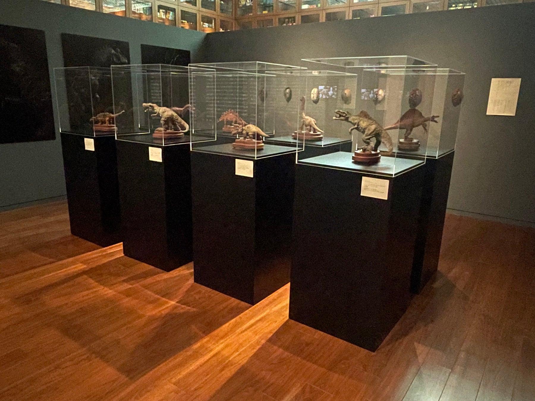 館内、展示室では3つの企画展を開催しており、中でも 「大好きをつなげる生き方~遊びの中の土」展におけるチョコレートでできた恐竜10体は、精巧なつくりで来館者を驚かせています。