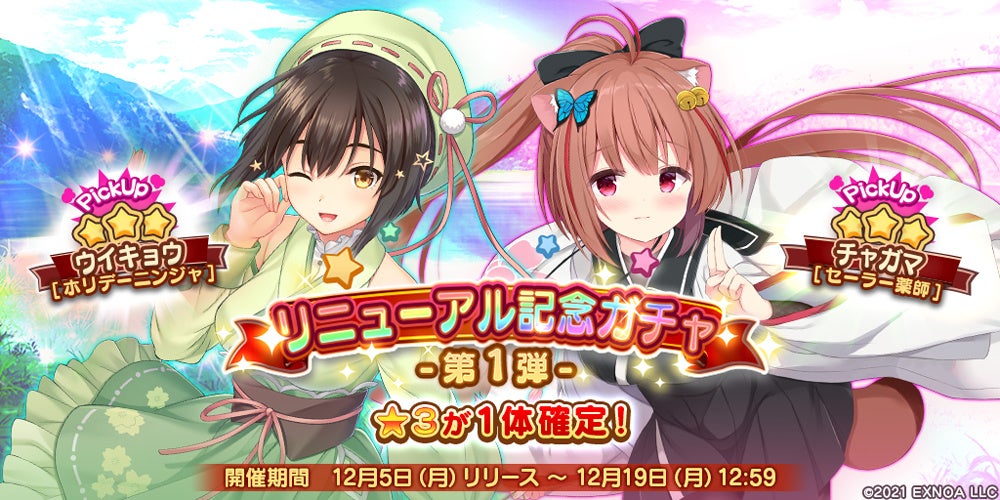 リニューアルサービス開始を記念して、★3デコが1体確定で当たる「リニューアル記念ガチャ第1弾」を実施いたします。詳細はゲーム内お知らせ、ガチャページをご確認ください。