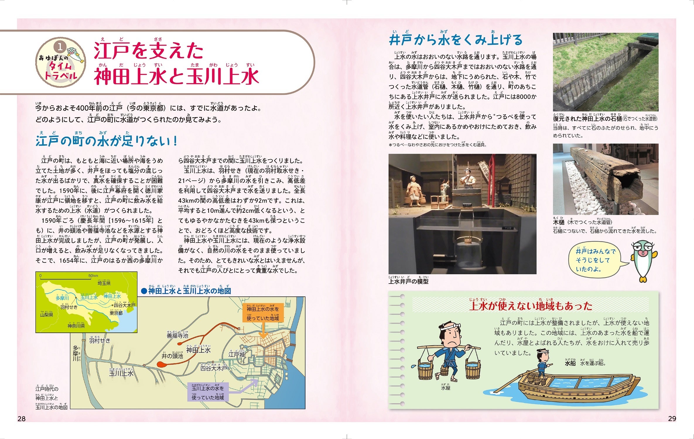 本書では、そうした浄水場のしくみや、水源となる森林、ダム、取水堰などについても取り上げ、水の供給に関する知識を得ることができます。