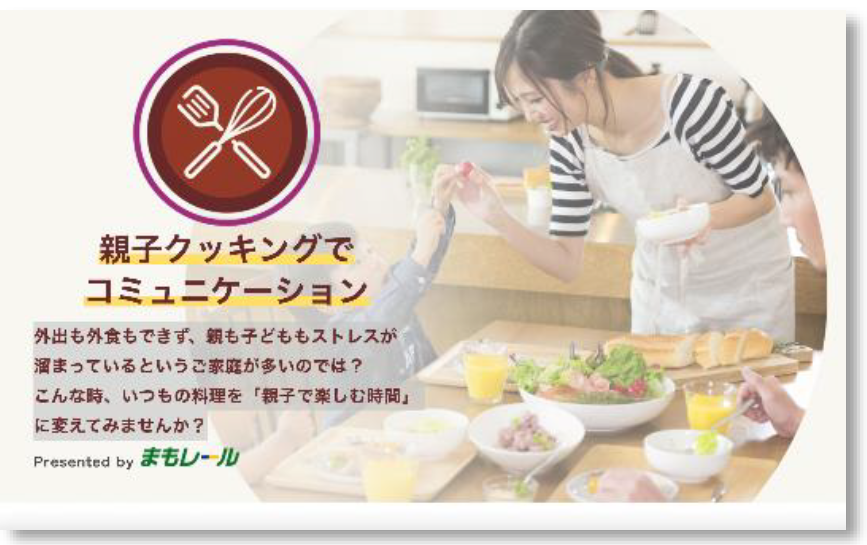 新型コロナウイルス感染症拡大の影響下で外出を控えなければいけないなか、親も子どももストレスが溜まっているというご家庭が多いのではないか、という発想から「親子クッキングでコミュニケーション」は生まれました。いつもの料理を「親子で楽しむ時間」に変えてみることで、親子の絆をサポートします。
