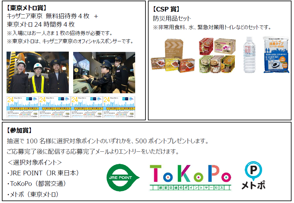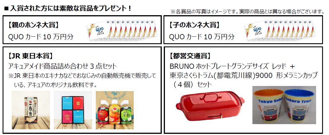 各賞について:親のホンネ大賞(1名)、子のホンネ大賞(1名)、JR東日本賞(1名)、都営交通賞(1名)、東京メトロ賞(1名)、CSP賞(1名)、