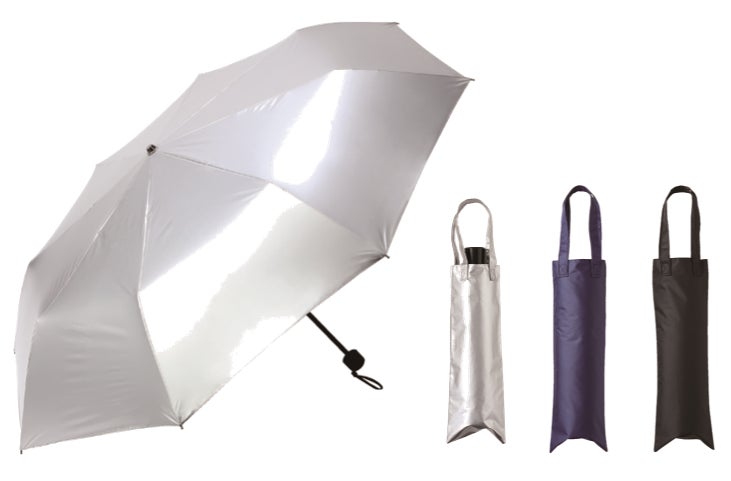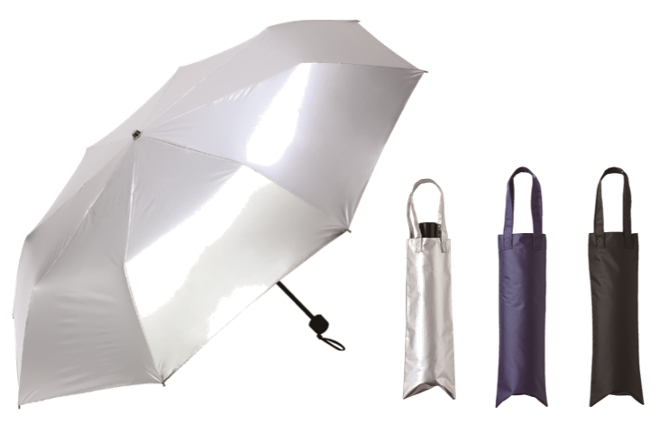 新商品として、「紫外線遮へい率99%以上」「風に強い耐風骨仕様」などの従来の機能のほか、表生地にトレンドカラーのシルバーカラーを採用した晴雨兼用傘をトップバリュから展開しています。表面に日差しを反射しやすいシルバーのコーティングを施すことにより、猛暑対策としても期待できます。