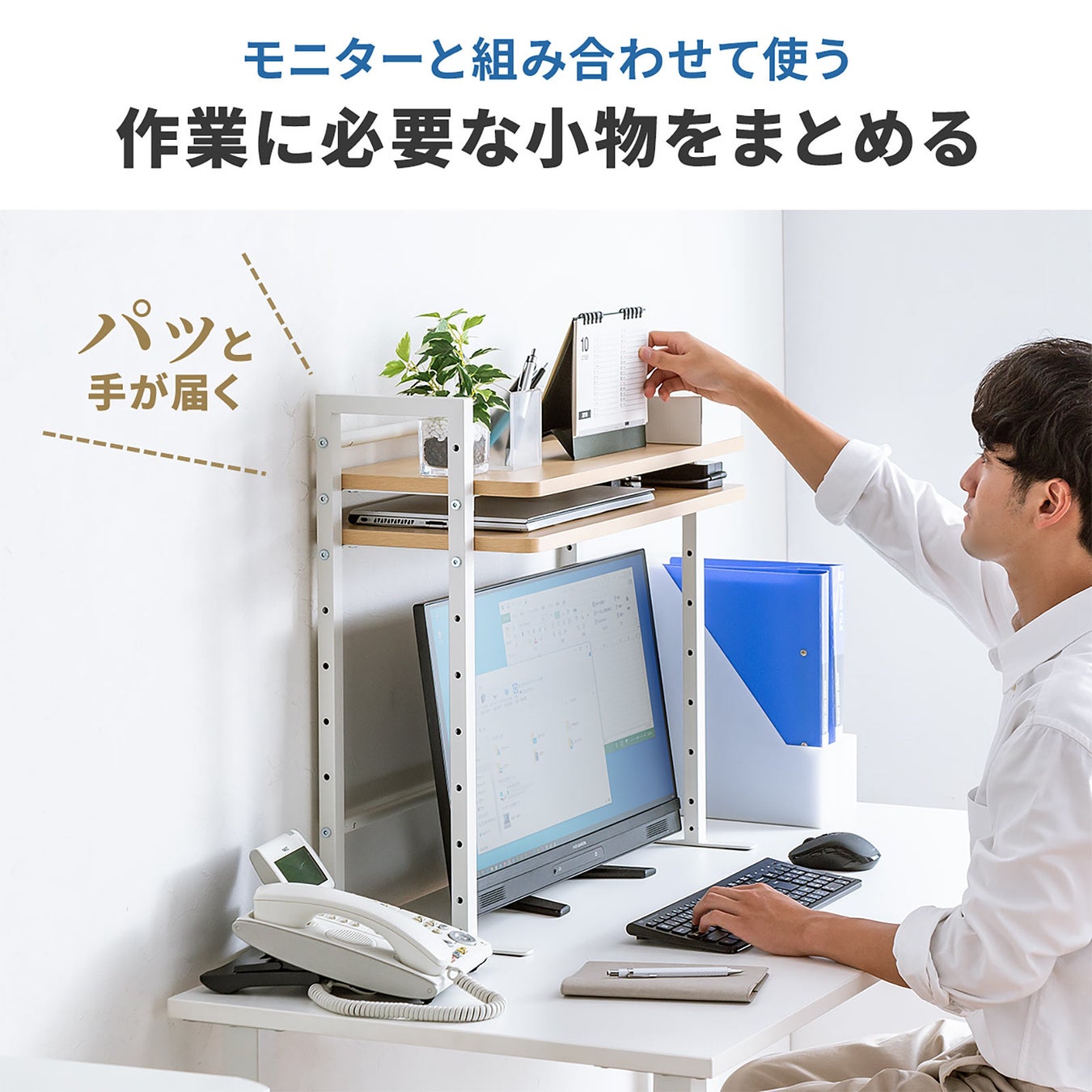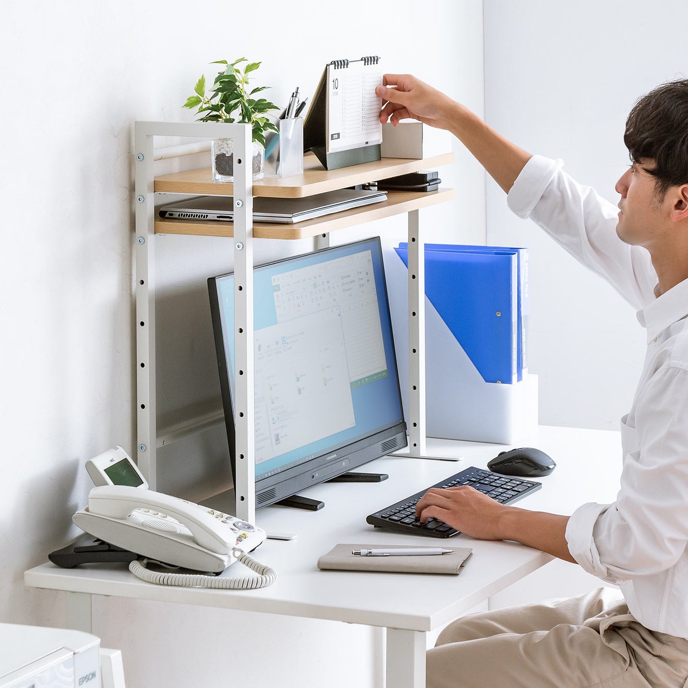 デスク上収納ラック 机上台 幅60cm クランプ式 2段 ハイタイプ シェルフ 机上ラック モニター台