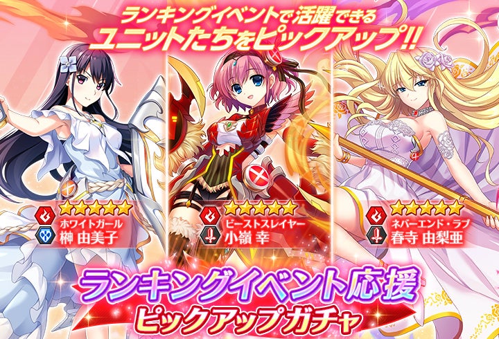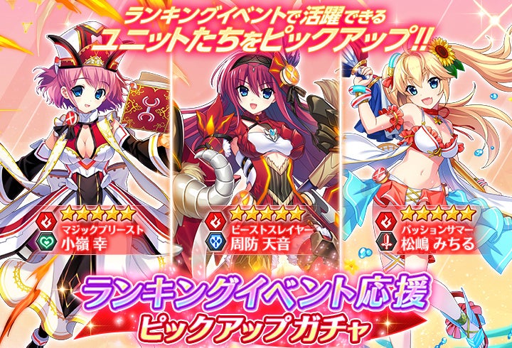 今回は2つに分かれたガチャでそれぞれ3人ずつをピックアップ!ランキングイベントで活躍できるユニットたちを編成してパーティを強化しましょう!