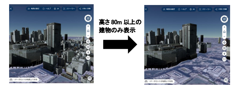 ○3D建物データの高さ情報によるフィルタリング(一例)