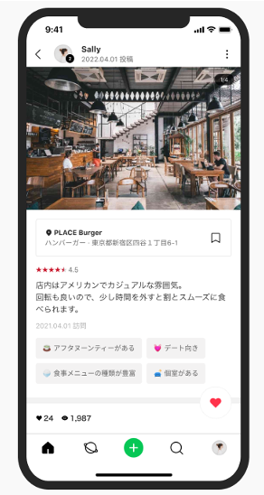 グルメ・カフェなどのおでかけスポットを、写真や動画・口コミ投稿から感覚的に探すことができます。