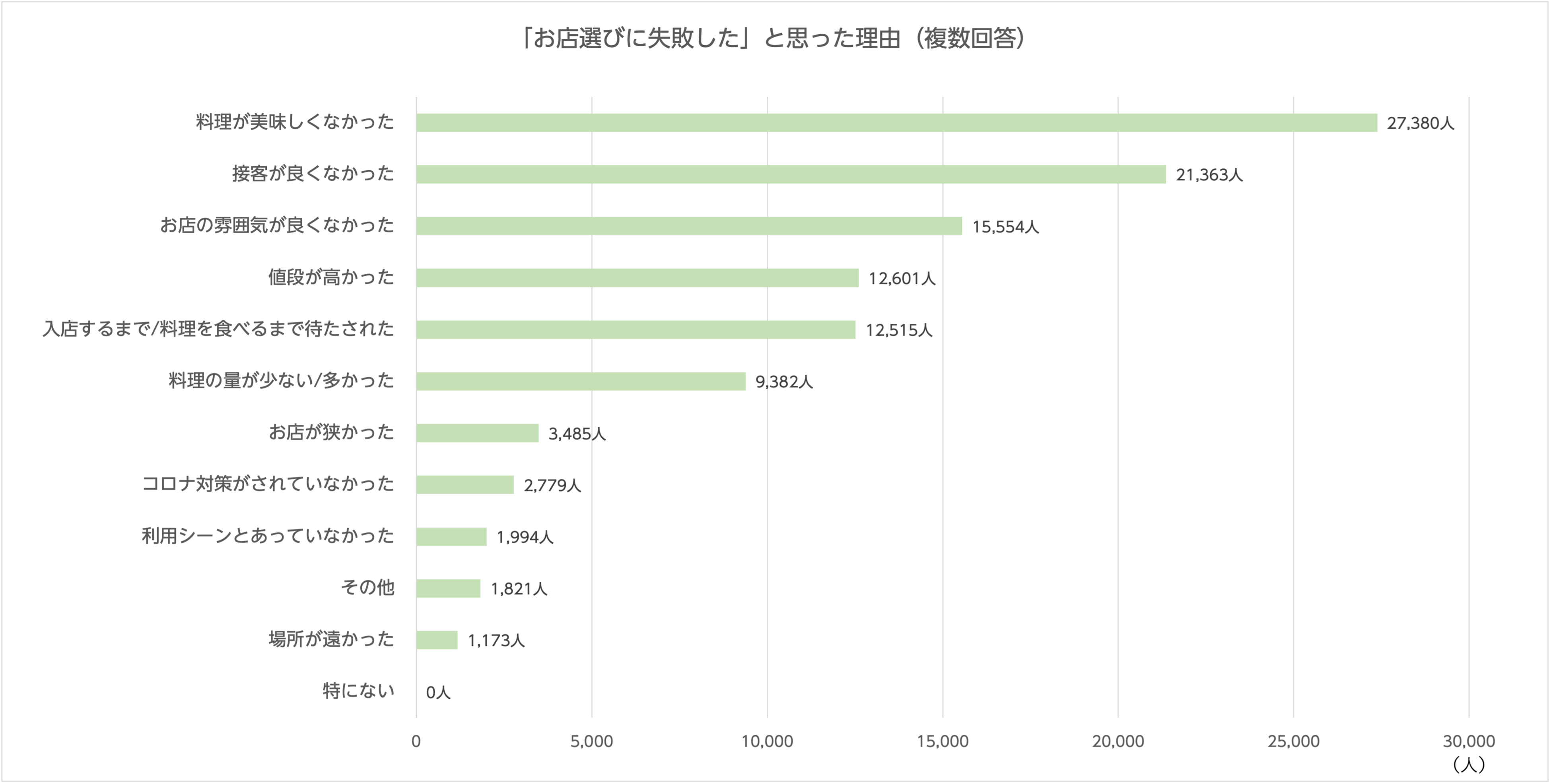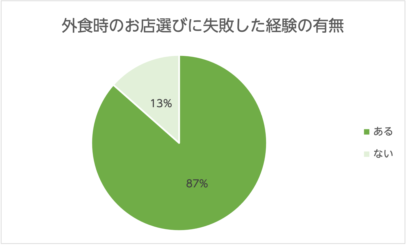 ・8割以上の人が、「お店選び・メニュー選びに失敗した経験がある」と回答。その理由として半数以上が「味」に関する項目を選択