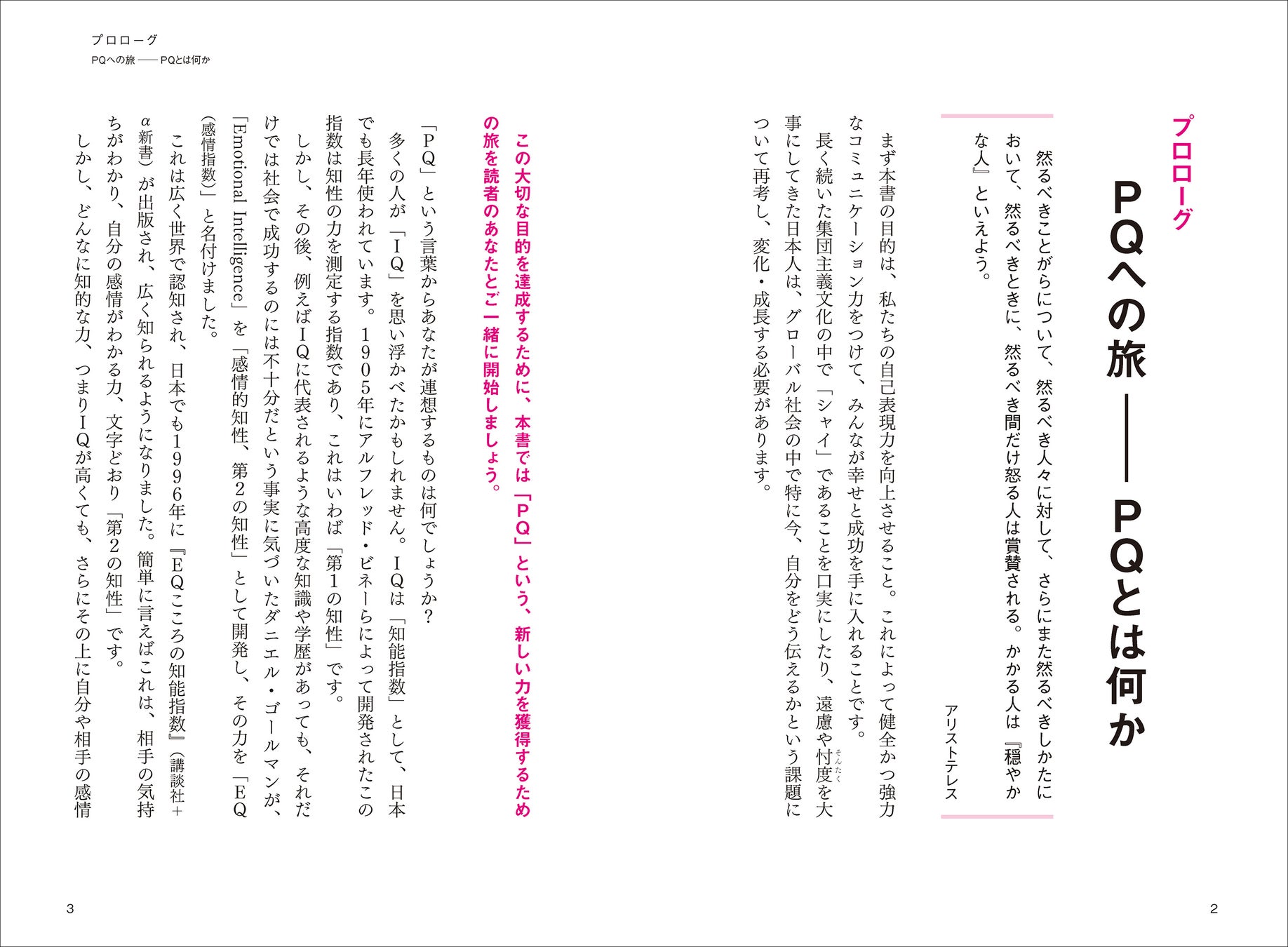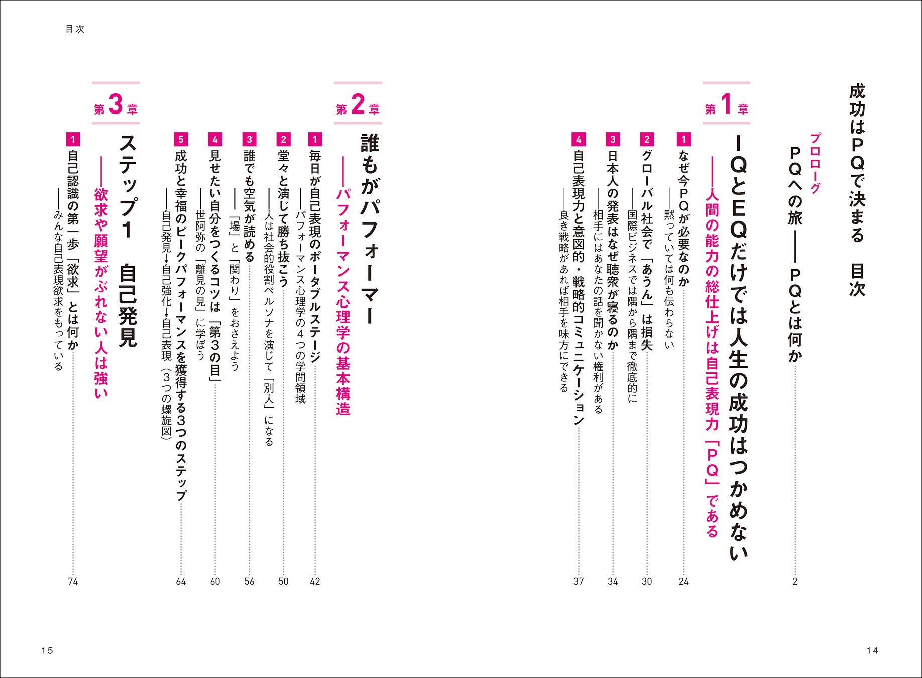 本書でPQを理解し、会話・プレゼン・スピーチ・オンラインなどあらゆるコミュニケーションの場面で活かせるトレーニングに取り組むことで、自己表現力を向上させ、ビジネスの成功と人生の幸せを確実に手に入れよう。