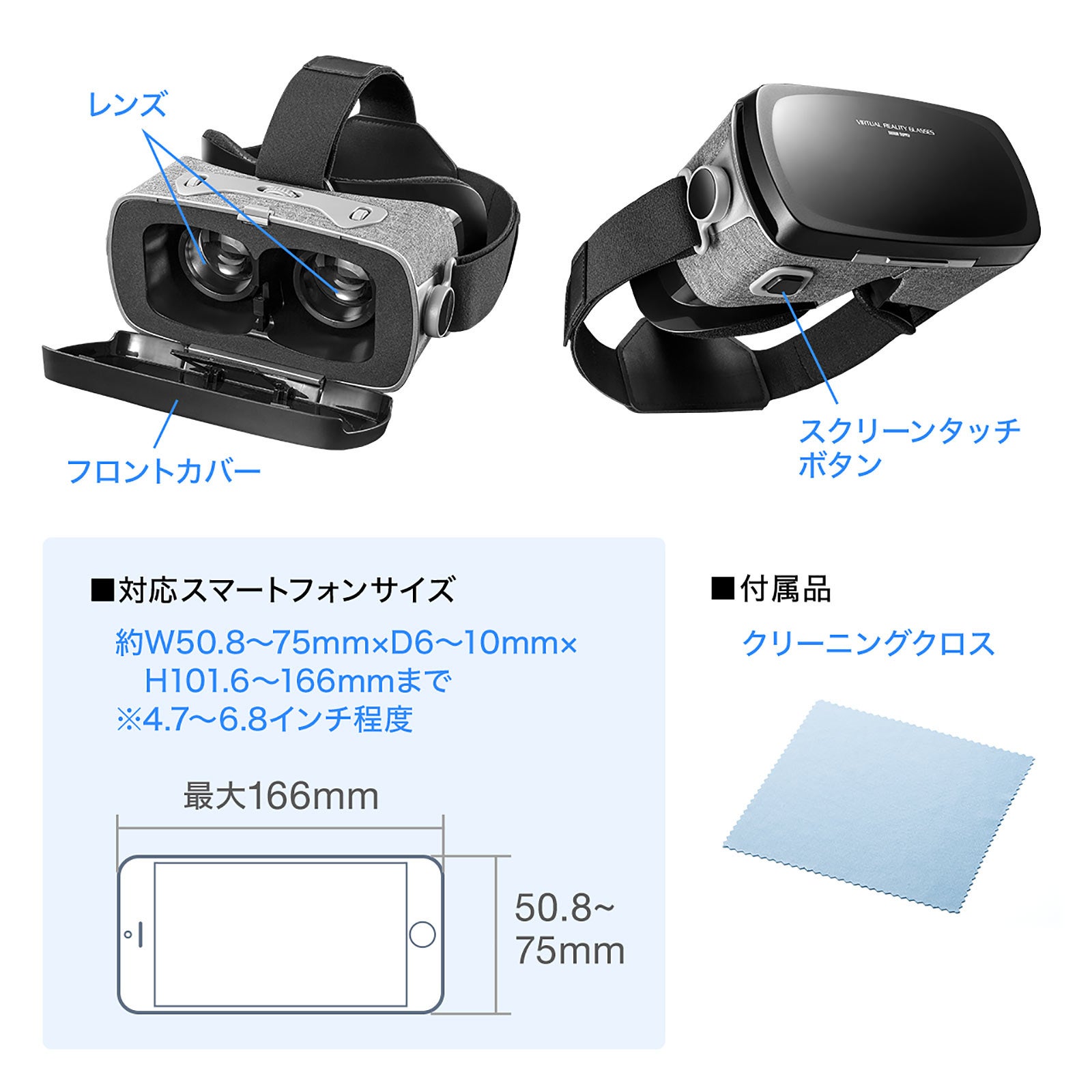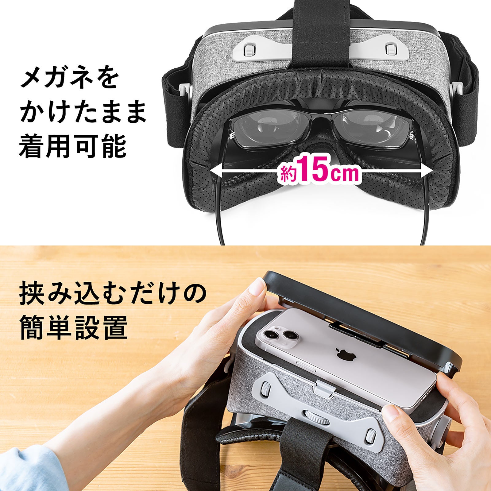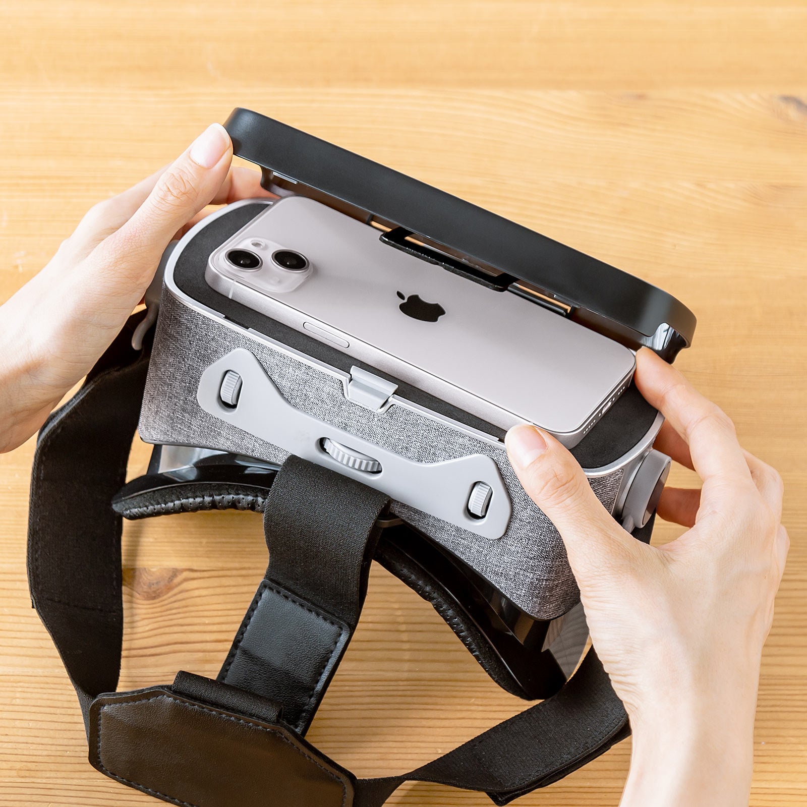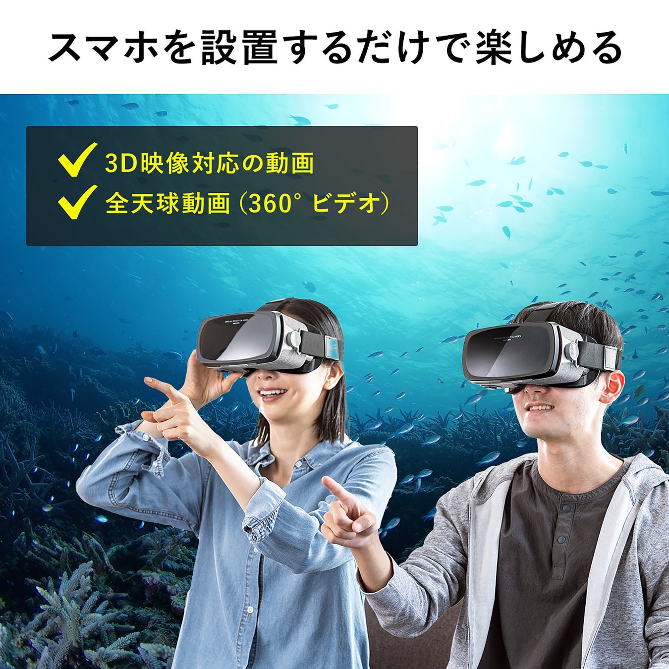 本製品は、スマートフォンを装着してVR映像や3D映像を手軽に楽しめるVRゴーグルです。YouTubeやVRアプリなどで公開されている全天球動画(360°ビデオ)や、3D動画を視聴できます。