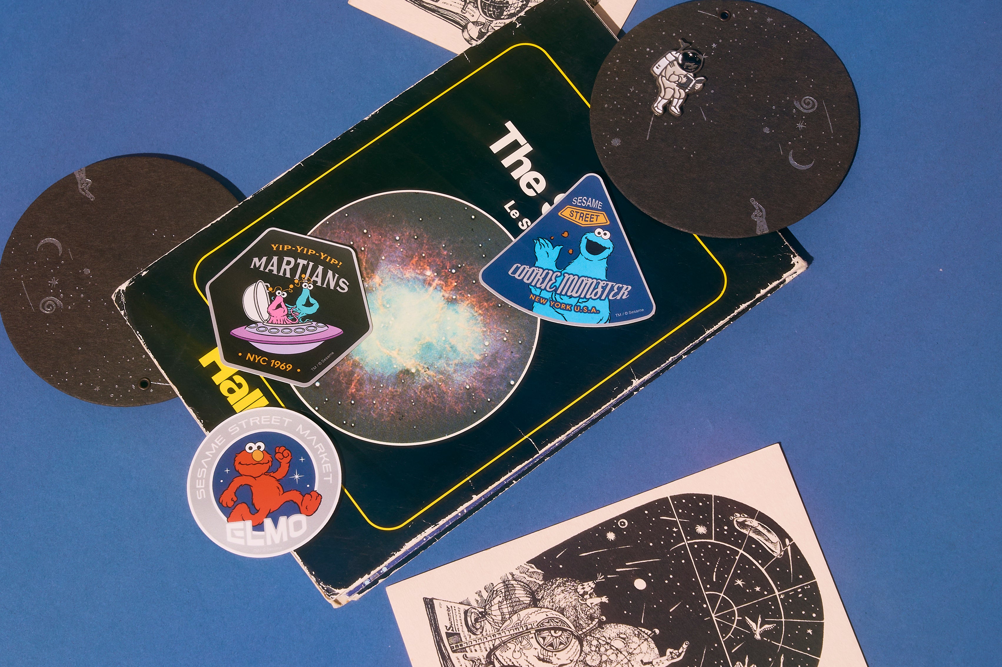 マットな質感が目を惹くダイカットタイプのステッカー。宇宙をイメージした背景にイップイップ、エルモ、クッキーモンスターを描いた3種類のデザインをラインアップしました。