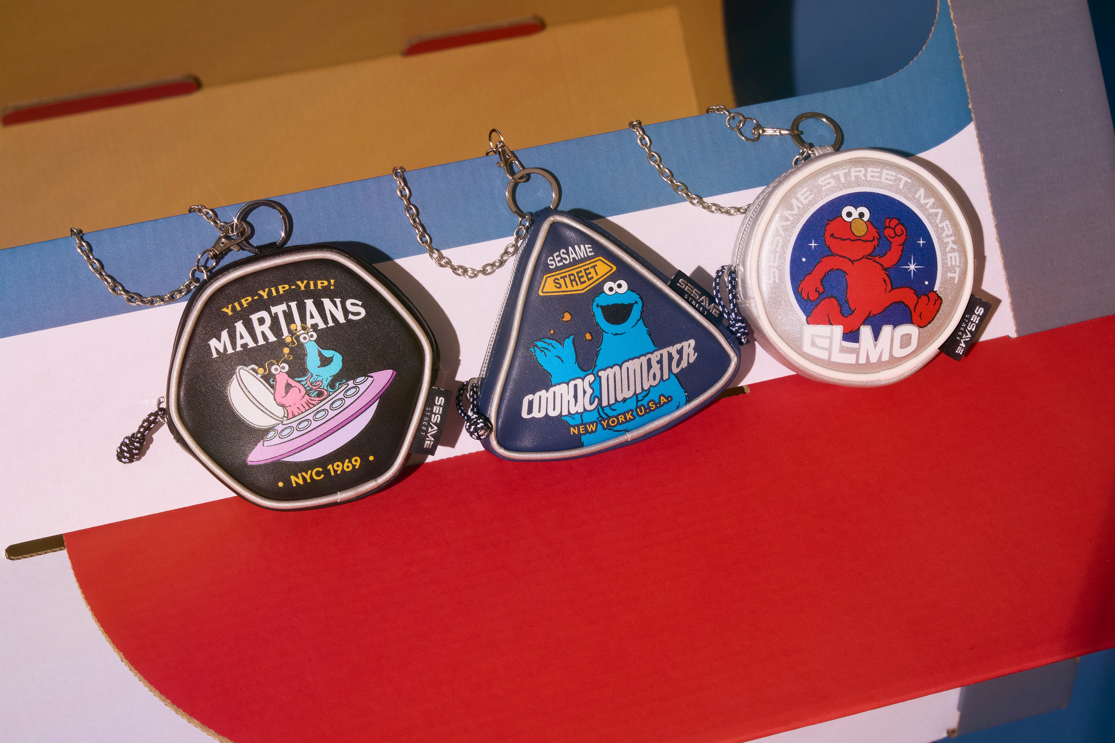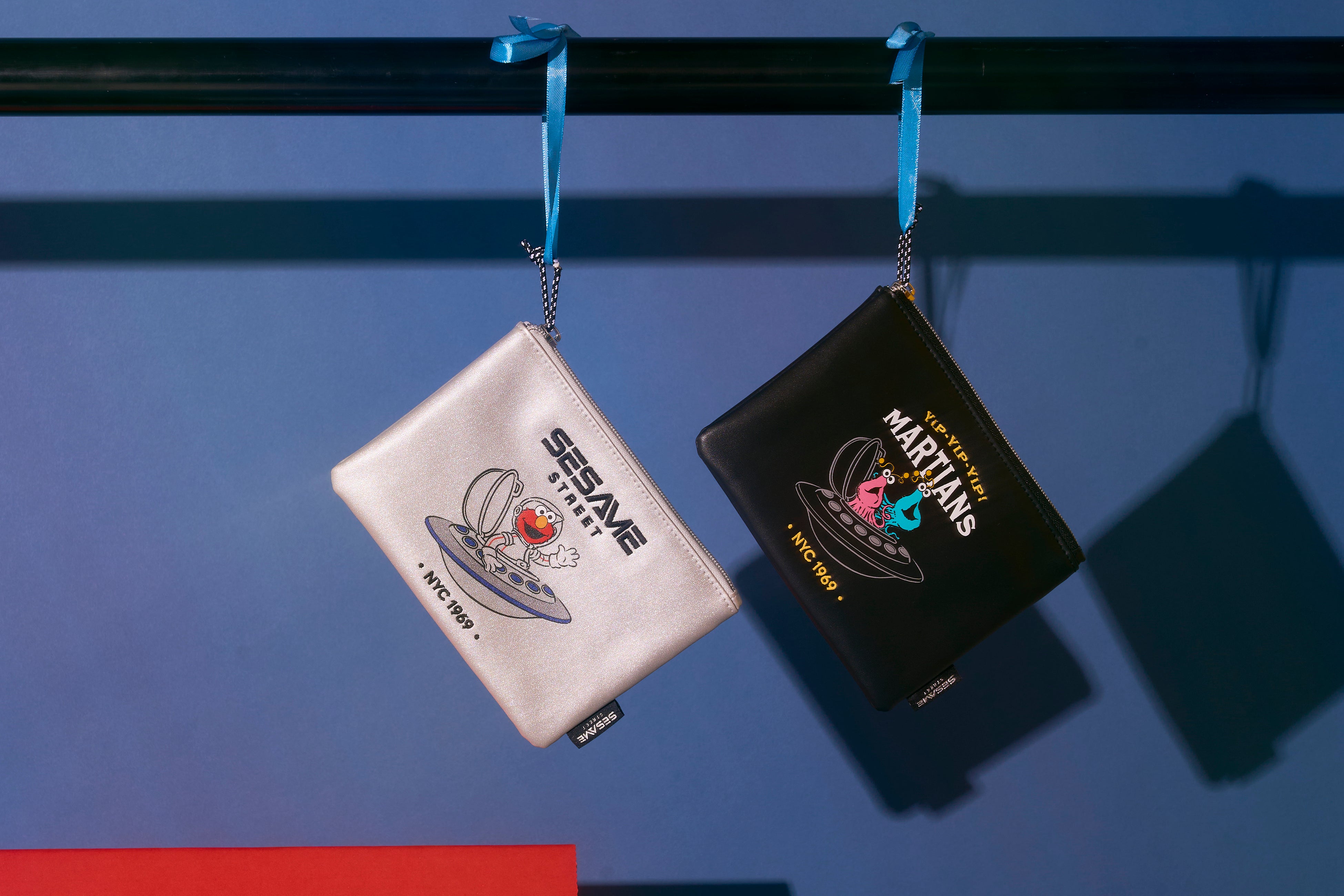 今回主役となるのは、地球のことを知るためにセサミストリートに時々やってくる火星人“イップイップ”。宇宙船に乗って宇宙を旅するエルモや、宇宙を楽しむクッキーモンスターも登場します。ラインアップには、お気に入りのぬいぐるみを宇宙飛行士に変身させることができる宇宙コスチュームをはじめ、ブランド初となるトラックジャケット、メタリック感が特徴のトートバッグやポーチ、ヘアクリップなど、アパレルから雑貨まで幅広く取り揃えました。ぬいぐるみチャームにはイップイップが新たに仲間入りし、イップイップのぬいバッジには新色のブルーが新登場。「SESAME STREET」のブランドロゴをシルバー糸で織りあげた、特別仕様の織ネームも見どころのひとつです。