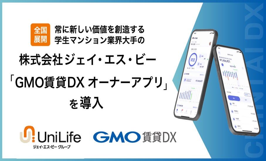 GMO インターネットグループにおいてインターネット上の集客サービスを展開するGMO TECH株式会社(代表取締役社長CEO:鈴木 明人 以下、GMO TECH)の連結会社で、不動産賃貸領域におけるDX(デジタルトランスフォーメーション)を支援するGMO ReTech株式会社(代表取締役社長:鈴木 明人 以下、GMO ReTech)は、賃貸管理会社向けDXプラットフォーム「GMO賃貸DXオーナーアプリ」を、学生会館や学生寮、学生専用マンションなどの企画開発・仲介斡旋・運営管理までをトータルで行う株式会社ジェイ・エス・ビー(以下、ジェイ・エス・ビー)に2022年8月から導入いただいたことをお知らせいたします。