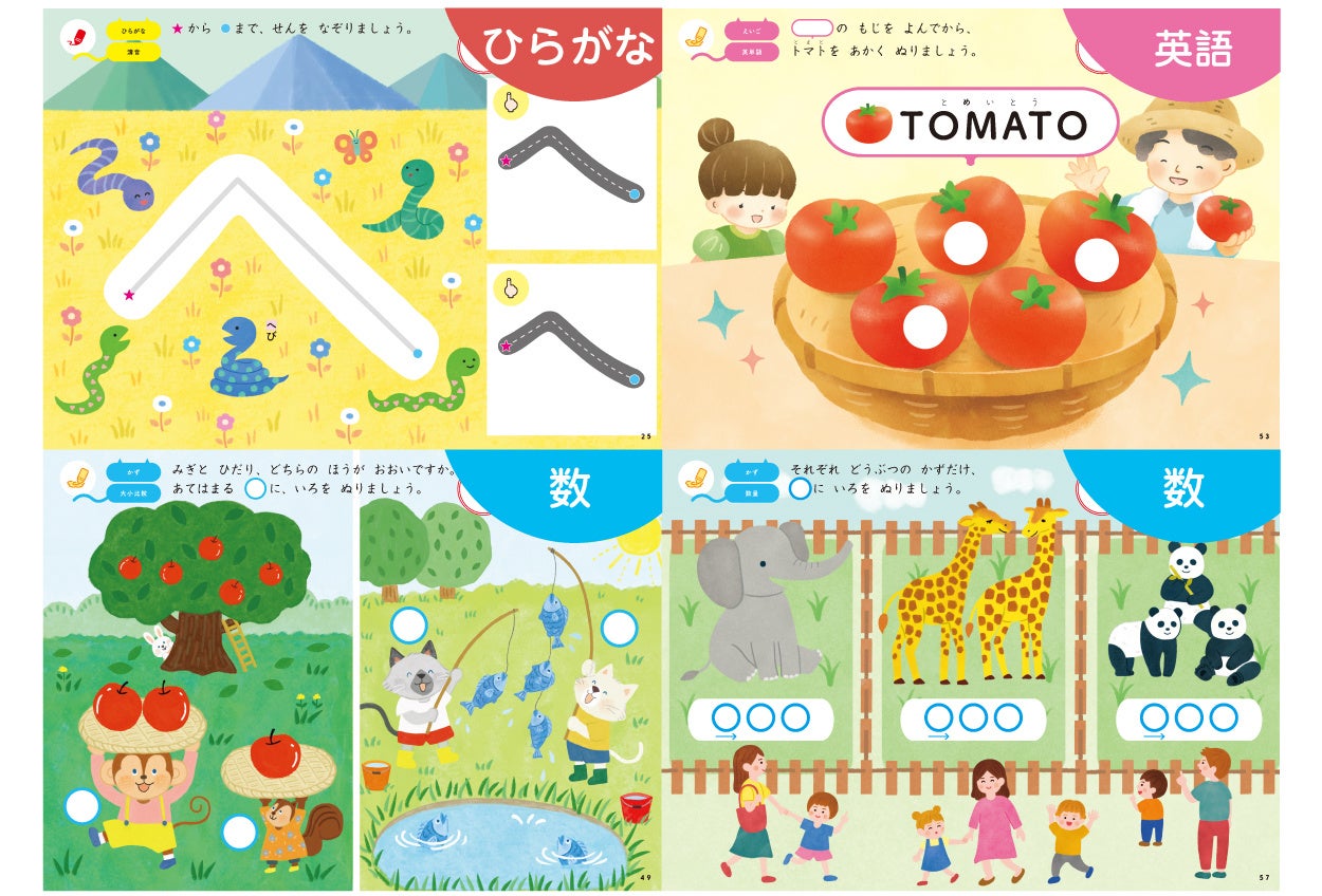 さらにキラキラの表紙やカラフルながんばりシール、そして絵本のような素敵なイラストなど、お子さんが楽しくできる工夫も盛りだくさん! 本書を通じて、「他のおけいこももっとやってみたい!」などと、お子さんの興味や意欲を引き出していただけるでしょう。