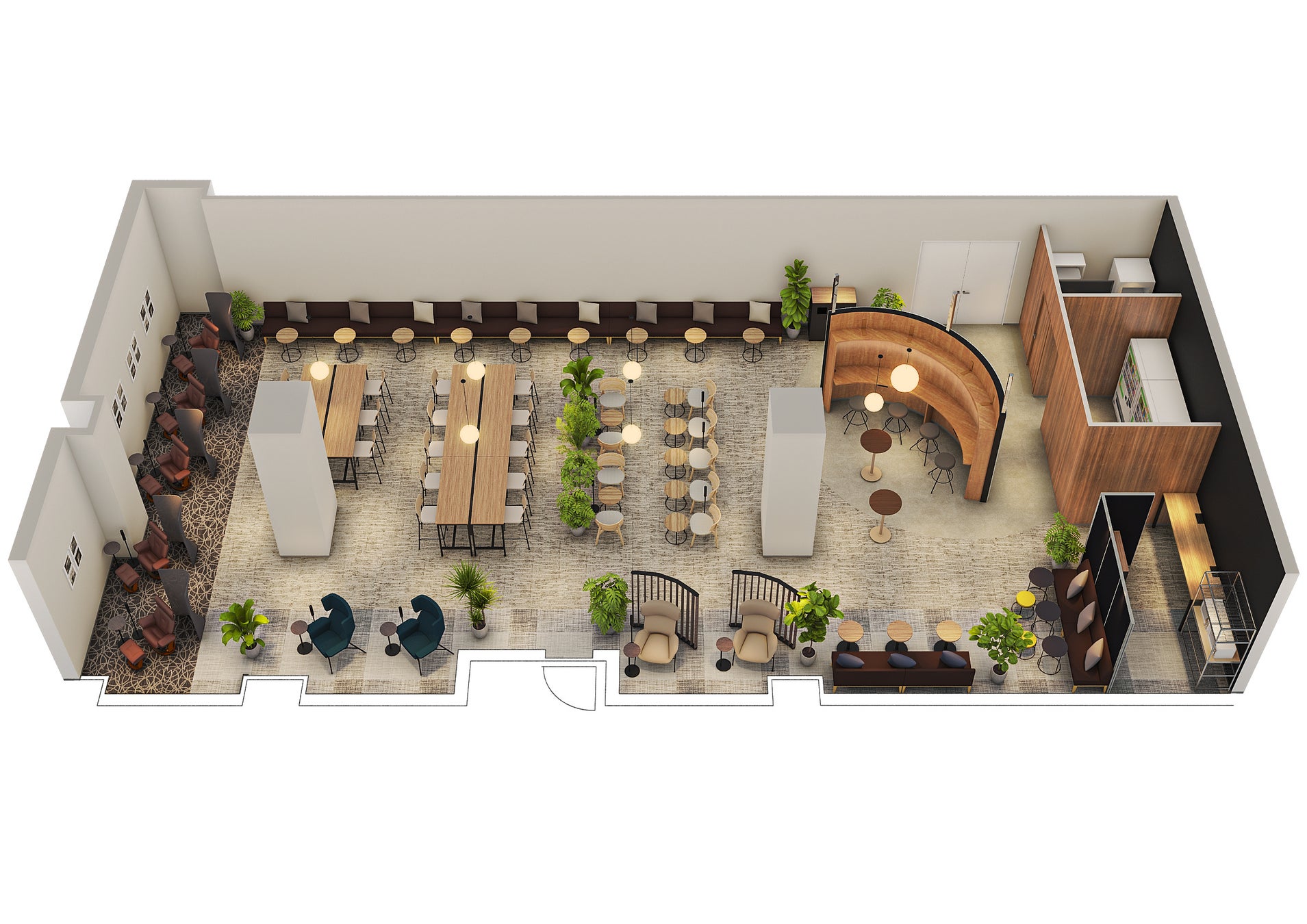 空間づくりは、オフィス空間設計で実績を持つコクヨ株式会社と協業いたしました。ワークプレイスで培われたノウハウを活かし、一人でリラックスするスペースとスタッフ同士の交流を引き出す空間とをバランスよく配置しました。