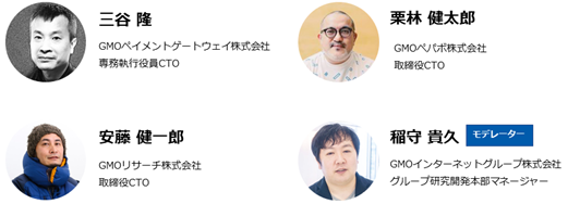 GMOインターネットグループにはインターネットインフラ事業をはじめとして広告・メディア・金融・暗号資産と様々な事業会社・開発組織があります。これらの技術力を強化し、グループシナジーの最大化を図るため2022年よりCTOが集まり、開発者の最高意思決定機関として技術責任者会議が組成されました。本セッションではこの技術責任者会議のボードメンバーであるCTOたちが、GMOインターネットグループの開発体制における現状から、これからの展望について議論を交わします。