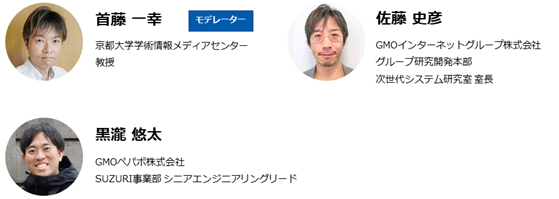 GMOインターネットグループにはブロックチェーンを用いたプロダクトが多数あります。暗号資産取引所を運営する「GMOコイン」、NFTマーケットプレイス「Adam byGMO」のほか、オリジナルグッズ作成・販売サービス「SUZURI byGMOペパボ」では2022年5月、NFTコンテンツを使ってオリジナルグッズを作成・販売できる新機能を実装しました。このセッションではブロックチェーンをはじめとした分散システムを研究する京都大学の首藤一幸教授をゲストモデレーターにお迎えして、ブロックチェーンで社会に価値提供を続けるGMOインターネットグループのエンジニアたちと、ブロックチェーン技術をビジネス実装する意義や課題など、広く議論します。