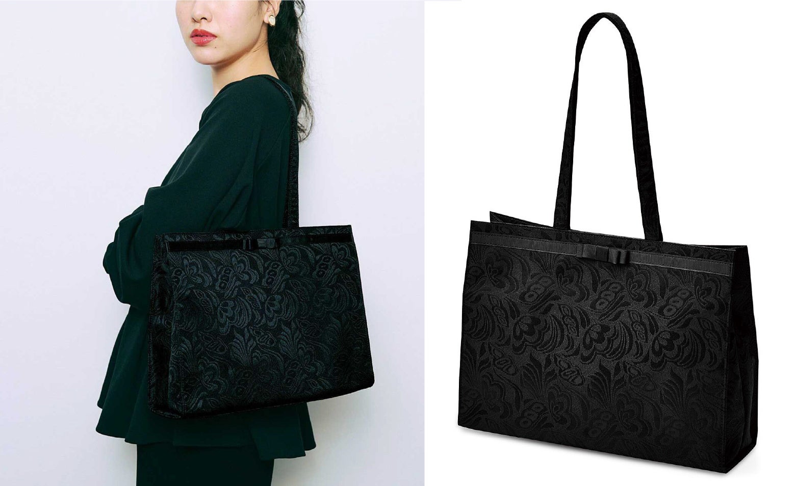 【NEW】UP.de ジャカード織りが品よく華やか まち付きで自立する5つ星セレモニートート〈ピュアブラック〉