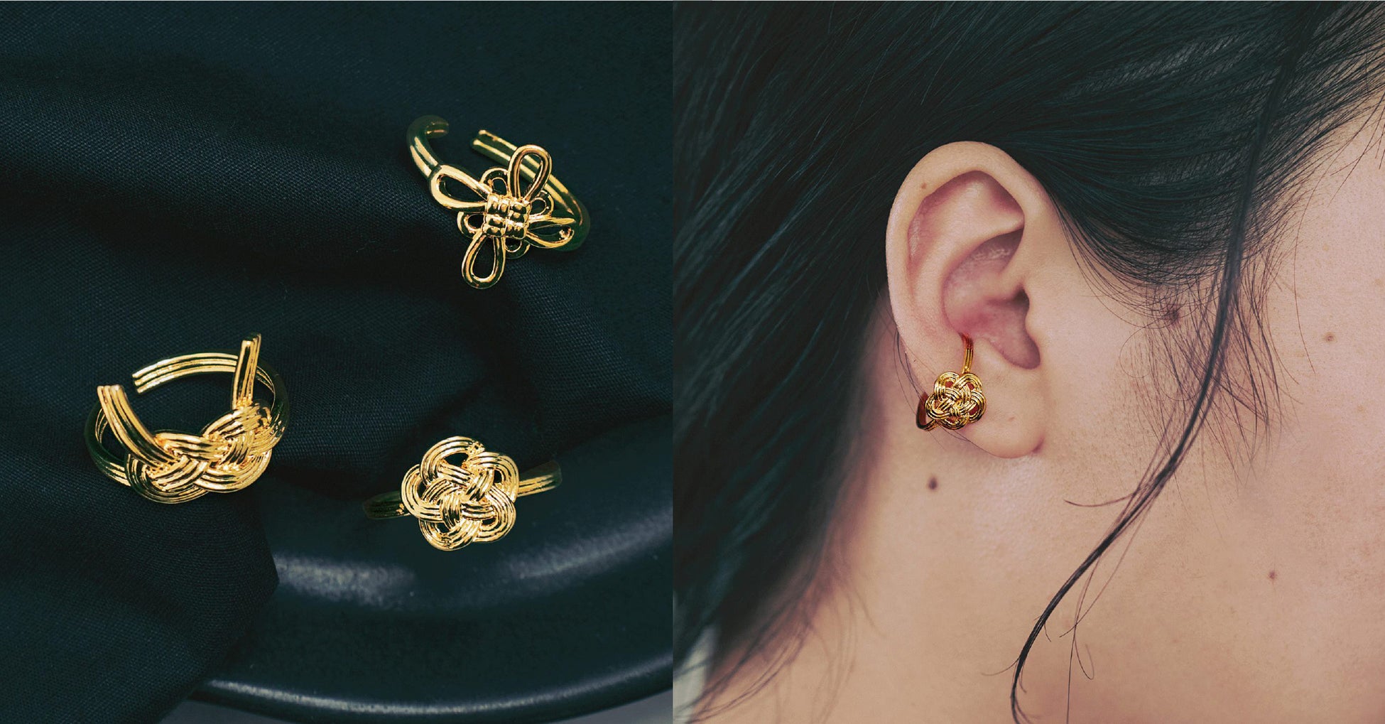 【NEW】el:ment 伝統の美しさ しあわせ結ぶ水引モチーフ イヤカフにもなるオープンリング〈22金メッキ〉の会