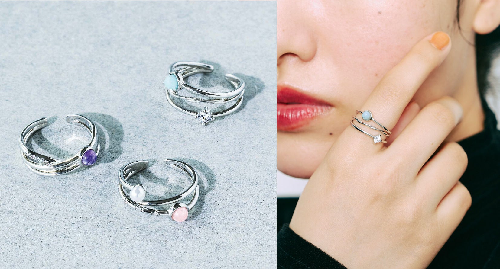 【NEW】UP.de 時短レイヤード風 イヤカフにもリングにもなる 天然石アクセ〈シルバーカラー〉の会