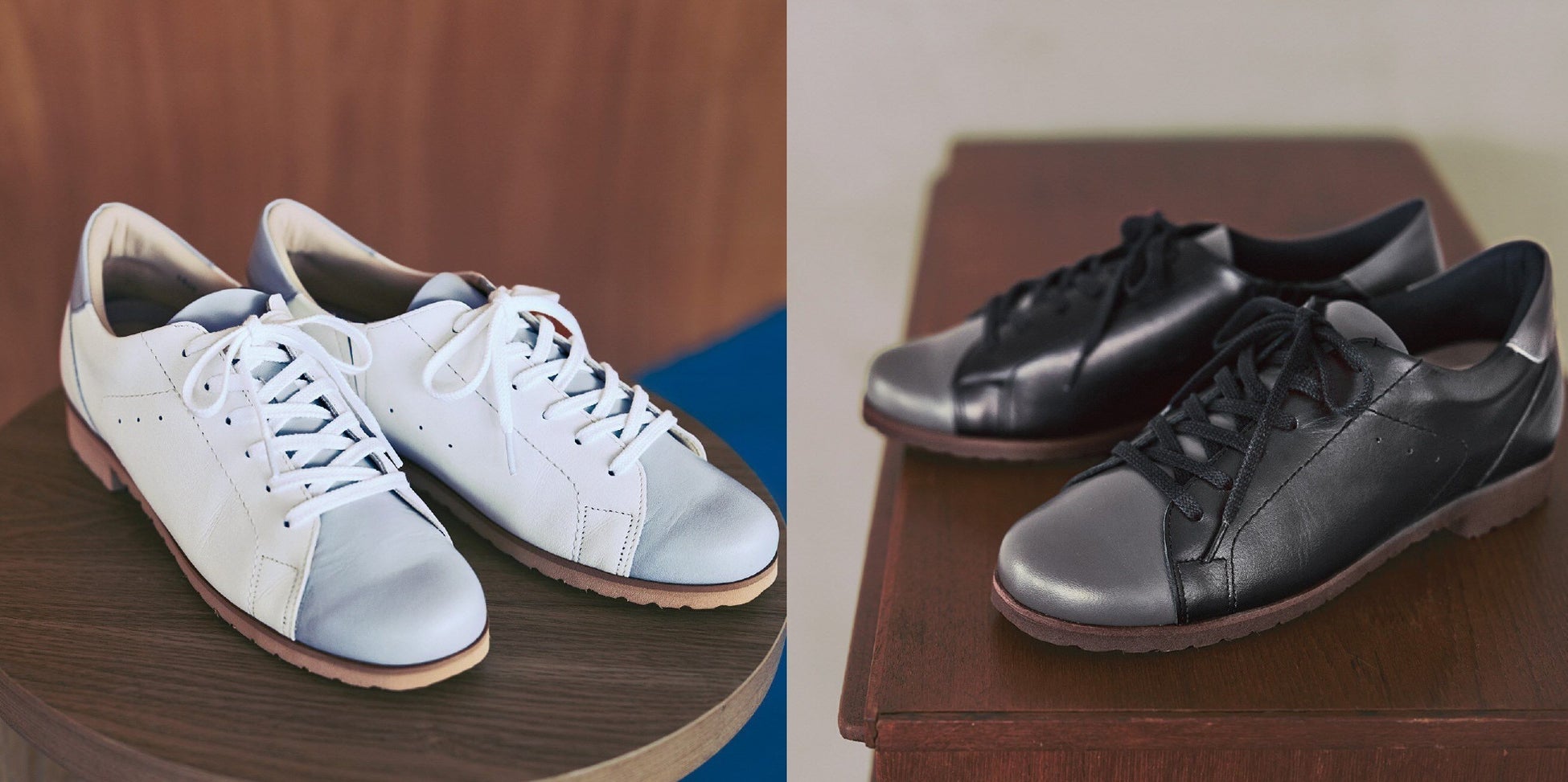 神戸・長田の職人が作り上げた、本革のレースアップシューズです。 軽量ソールで軽やかな履き心地を実現し、インヒールで脚を美しく見せます。肌あたりが優しいメッシュ素材とクッション入りで長時間履いても快適です。日常から旅先まで幅広いシーンで活躍します。また水引モチーフのアクセサリーは、耳元や手元を彩る万能アイテムです。イヤカフにもリングにもなるデザインで、真ちゅうを使った繊細な線と結びが特徴的です。やさしい輝きが縁起の良さを引き立ててくれます。