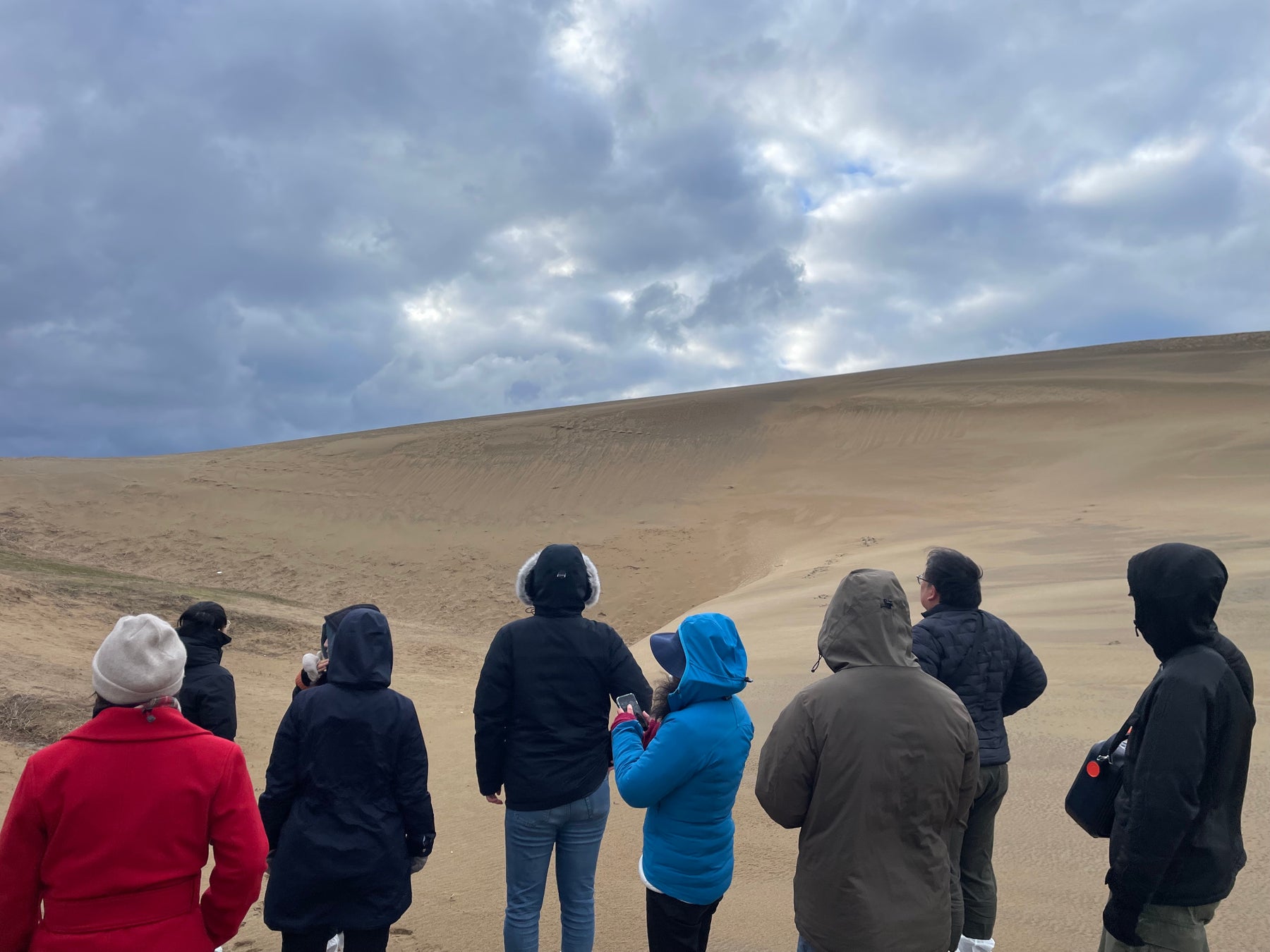 3日目は、宮崎理沙主任研究員(宇宙航空研究開発機構)による月内部進化に関する総合討論、JAXAの月惑星探査データ解析グループ(JLPEDA)グループの活動紹介、その後、鳥取砂丘へ場所を移し、小玉芳敬教授(鳥取大学)による砂丘ガイドツアー、鳥取砂丘月面実証フィールド「ルナテラス」の見学と、充実の3日間となりました。