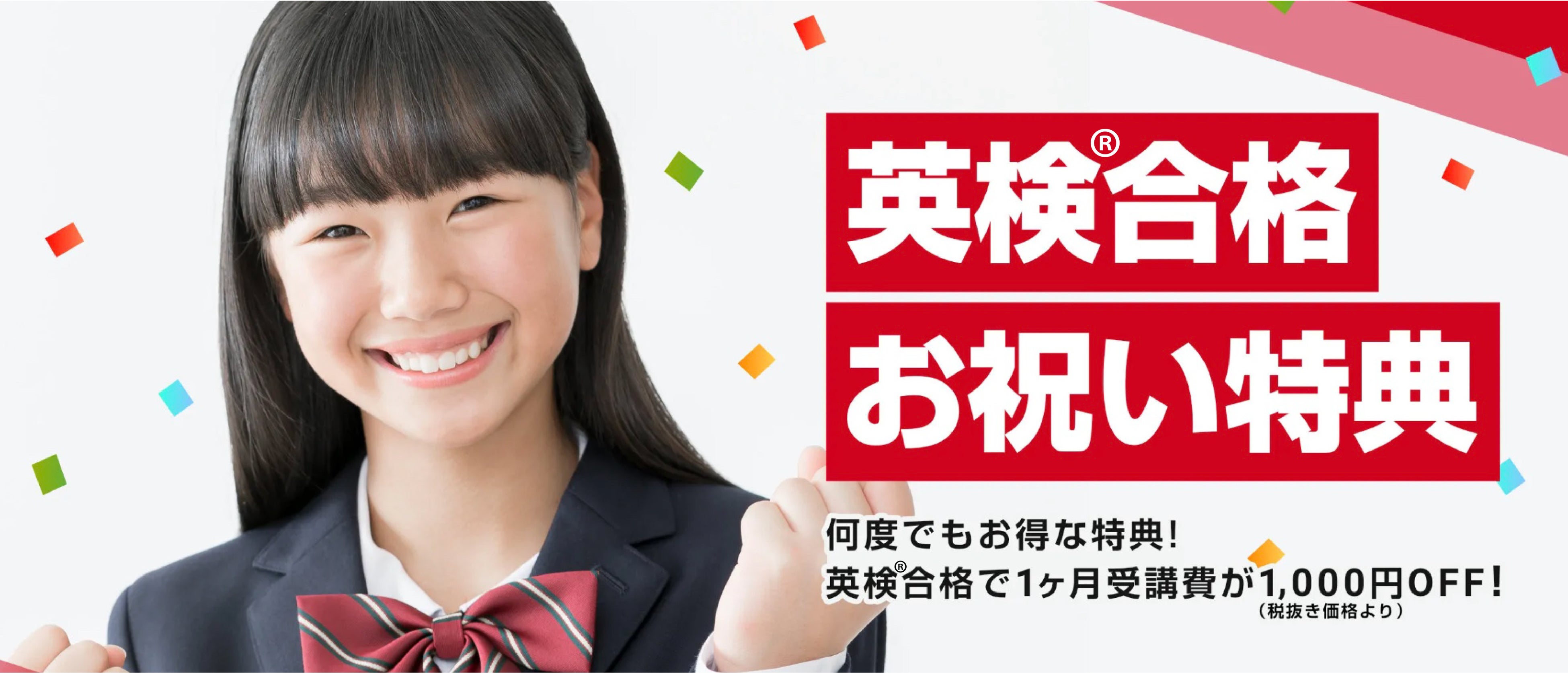 Kimini英会話では、英検®に合格したお祝いとして受講料が1,000円OFFとなる特典をお送りしております。もちろん別の級を取得した場合にも同様に1,000円OFFさせていただきます!