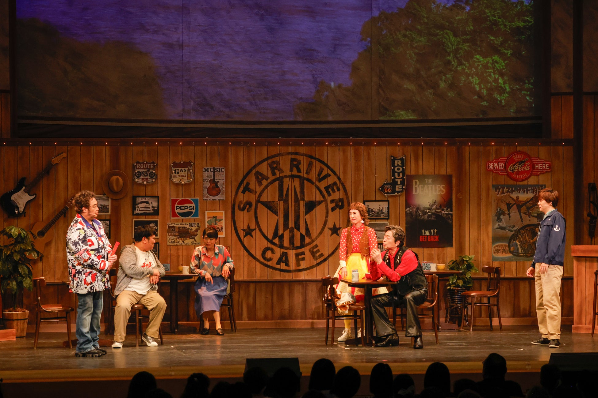 第1部の昭和歌謡音楽劇『どこへ時が流れても~俺たちのジュークボックス~』は、中村の故郷である宮城県の女川町をモデルにした同県の港町にある「スターリバー・カフェ」が舞台。東日本大震災によって流された後、中村扮する主人公・星川誠が再建したカフェという設定。登場人物たちの心情と昭和歌謡の名曲をフィットさせながら、笑って泣けるハートフルコメディだ。「どこへ時が流れても」というタイトルは、2017年に中村が発表したシングルの曲名が由来になっている。「俺たちのジュークボックス」は、かつて中村が主演した『俺たちの旅』(1975~76年)などの青春ドラマを彷彿させる。