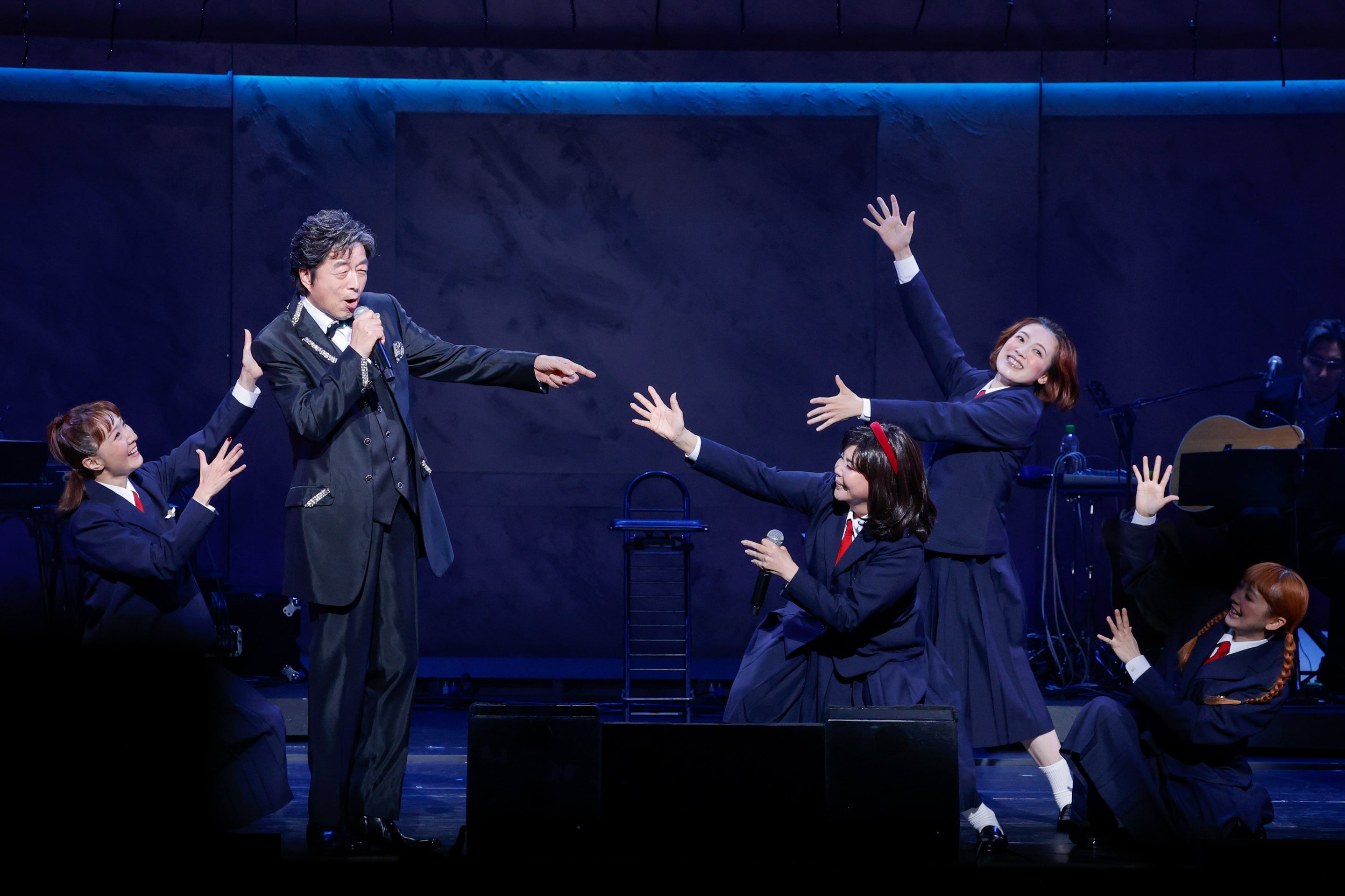 ライブでは他に、「50年の中で奇跡といえるいろんな出会いがありましたが、主役でデビューできた『われら青春!』(1974年)の挿入歌だったこの曲との出会いは、中村に歌手としての道も作ってくれた奇跡の一つ」と語ったデビュー曲にして10週連続でヒットチャート1位に輝いた「ふれあい」をはじめ、「心の色」(1981年/ドラマ『われら動物家族』挿入歌)、「恋人も濡れる街角」(1982年/映画『蒲田行進曲』主題歌)といった大ヒット曲。レアなところでは『ゆうひが丘の総理大臣』の挿入歌でユーミン(呉田軽穂名義)が書き下ろした「日時計」。バブル期にお洒落な刑事を演じた『誇りの報酬』(1985~86年)の挿入歌「想い出のクリフサイド・ホテル」も披露。さらに東日本大震災後、高校時代の旧友から小学校の校歌を作って欲しいという手紙が届いたこときっかけで作曲した東松島市立鳴瀬桜華小学校歌の「花になろう」など。記念公演にふさわしく、中村によるエピソードトークと歌によってデビュー50周年の軌跡を表現するステージになった。本公演は6月18日に千穐楽を迎える。