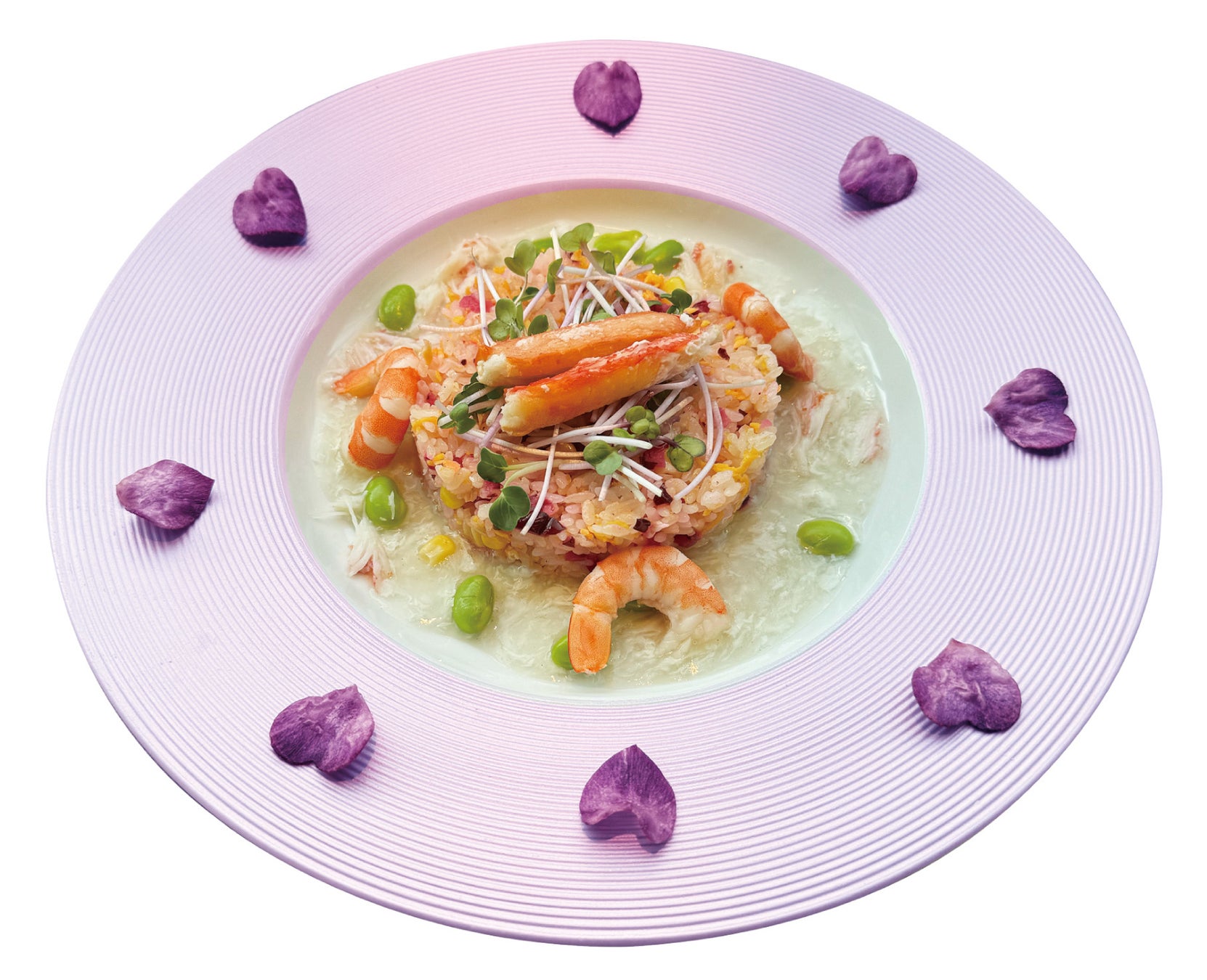 ビストロチャイナ「アンコール」では、高城れにさん監修の特別メニューやドリンクが登場。柴漬けで紫に色付けしたチャーハンに風味豊かな海鮮あんをあわせ、ハートを象った紫イモチップスを散りばめた「あんかけチャーハンの世界を守って!lovelyrenichaahan♡」には、高城れに総支配人のメッセージ入りランチョンマットを特典に!ドリンクにも限定特典をセットしました。