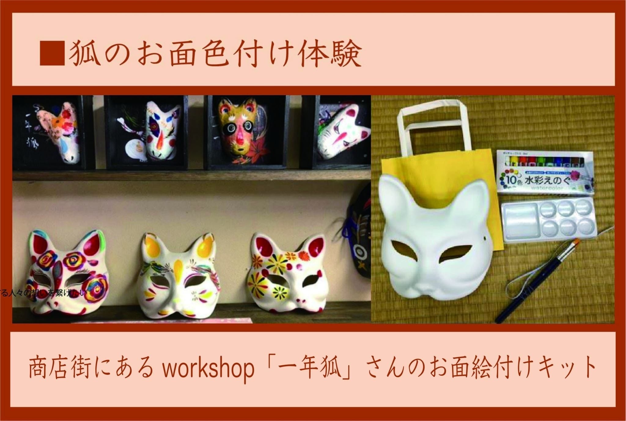 ※お面色付け体験のご予約は直接一年狐さんへご連絡お願い致します。