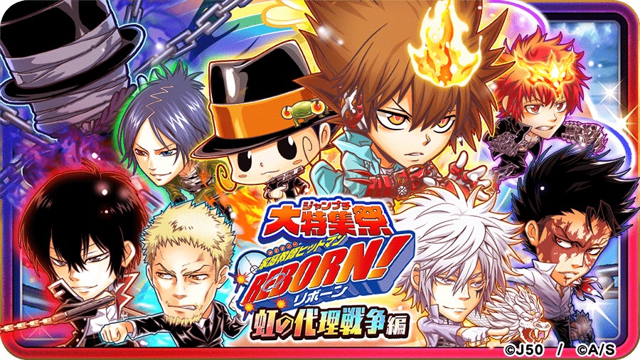 「ジャンプチ ヒーローズ」は、本日より『家庭教師ヒットマンREBORN!』を特集した「ジャンプチ大特集祭 家庭教師ヒットマンREBORN! 虹の代理戦争編」を開催いたします。『週刊少年ジャンプ』で2004年に連載を開始し、2012年に連載終了した現在も高い人気を誇る『家庭教師ヒットマンREBORN!』の世界が「ジャンプチ ヒーローズ」に再び降臨。