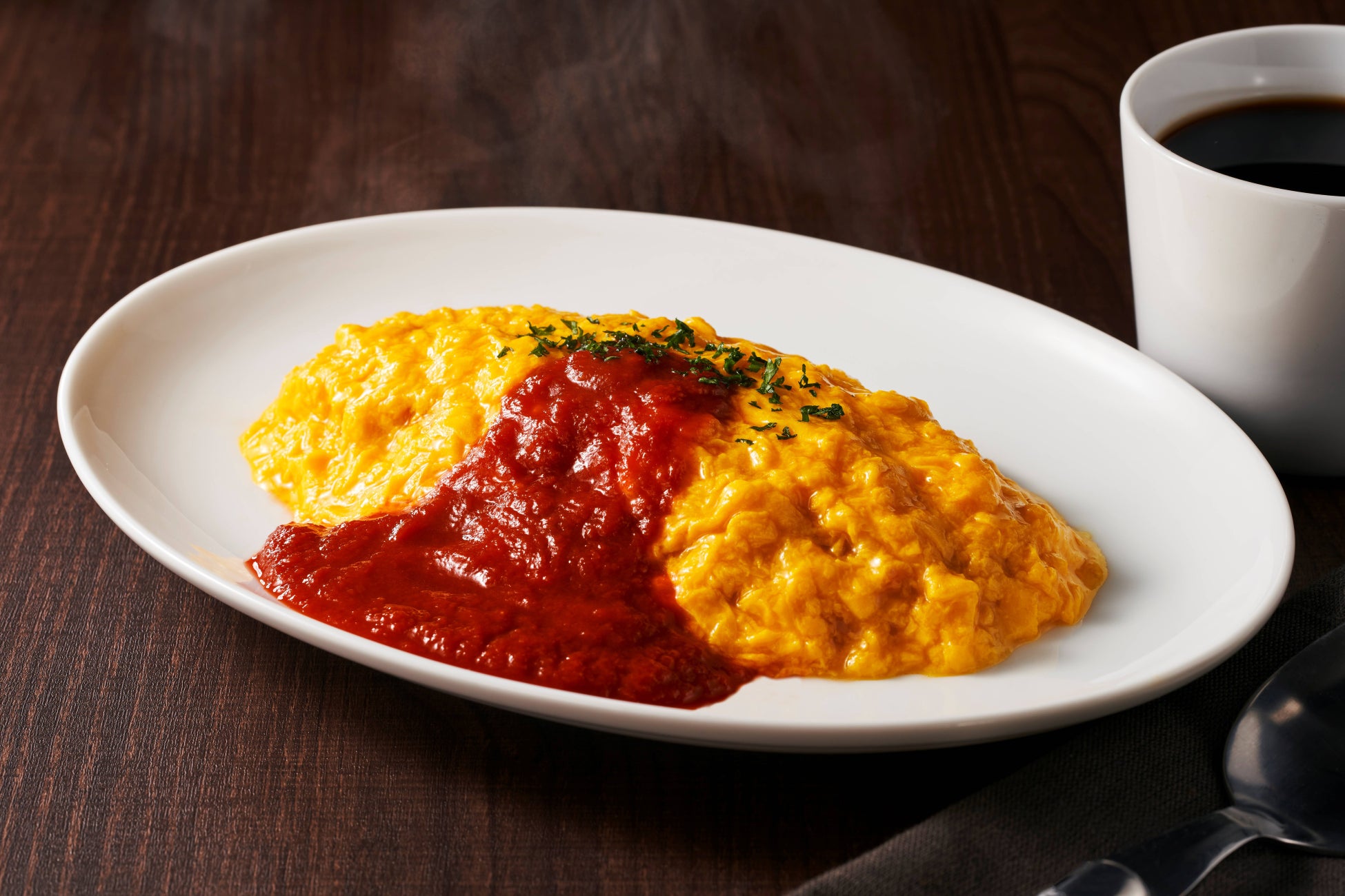 トウモロコシを加えた味わい深いケチャップライスに、人参と白いんげん豆から作られたふわとろ食感のプラントベーススクランブルエッグを乗せた一品。 トマト本来の風味を活かした香り高くみずみずしい味わいのトマトケチャップと、じっくり炒めた玉ねぎや赤ワイン、豆乳バターが決め手のコクのあるプラントベースデミグラスソースの2種類を展開します。