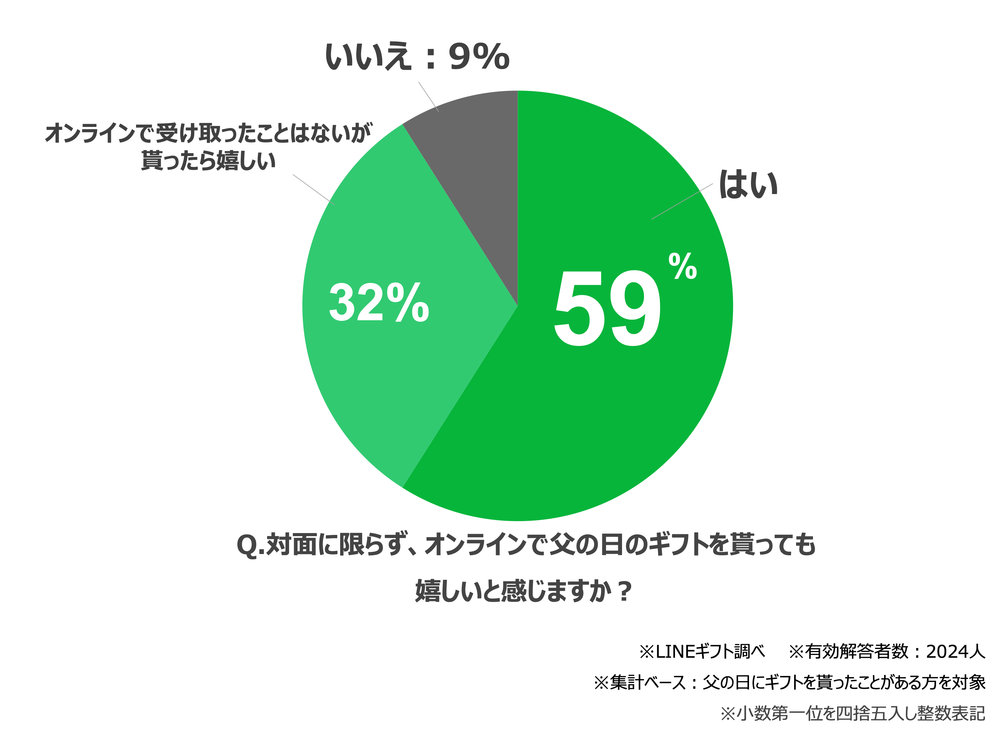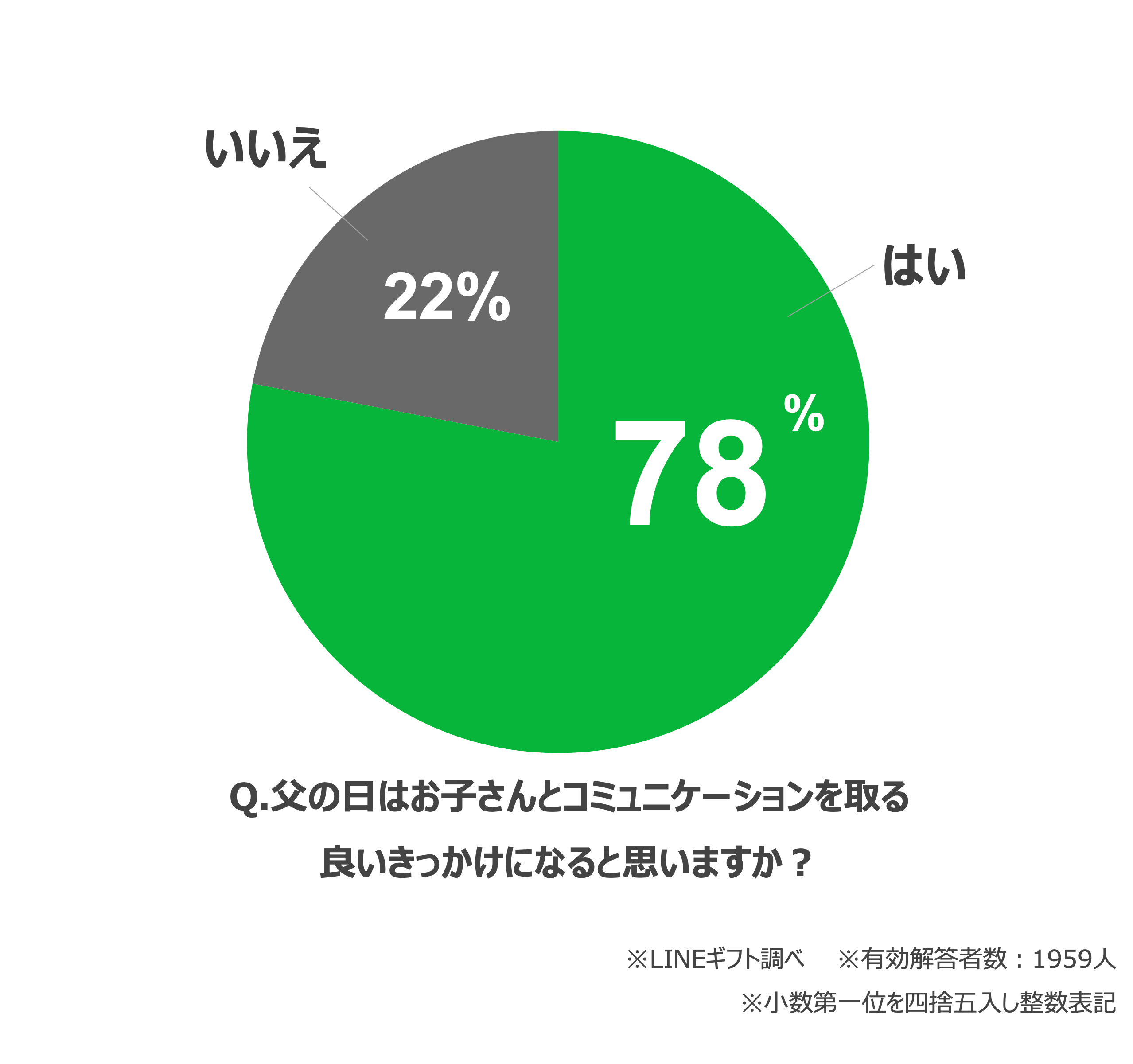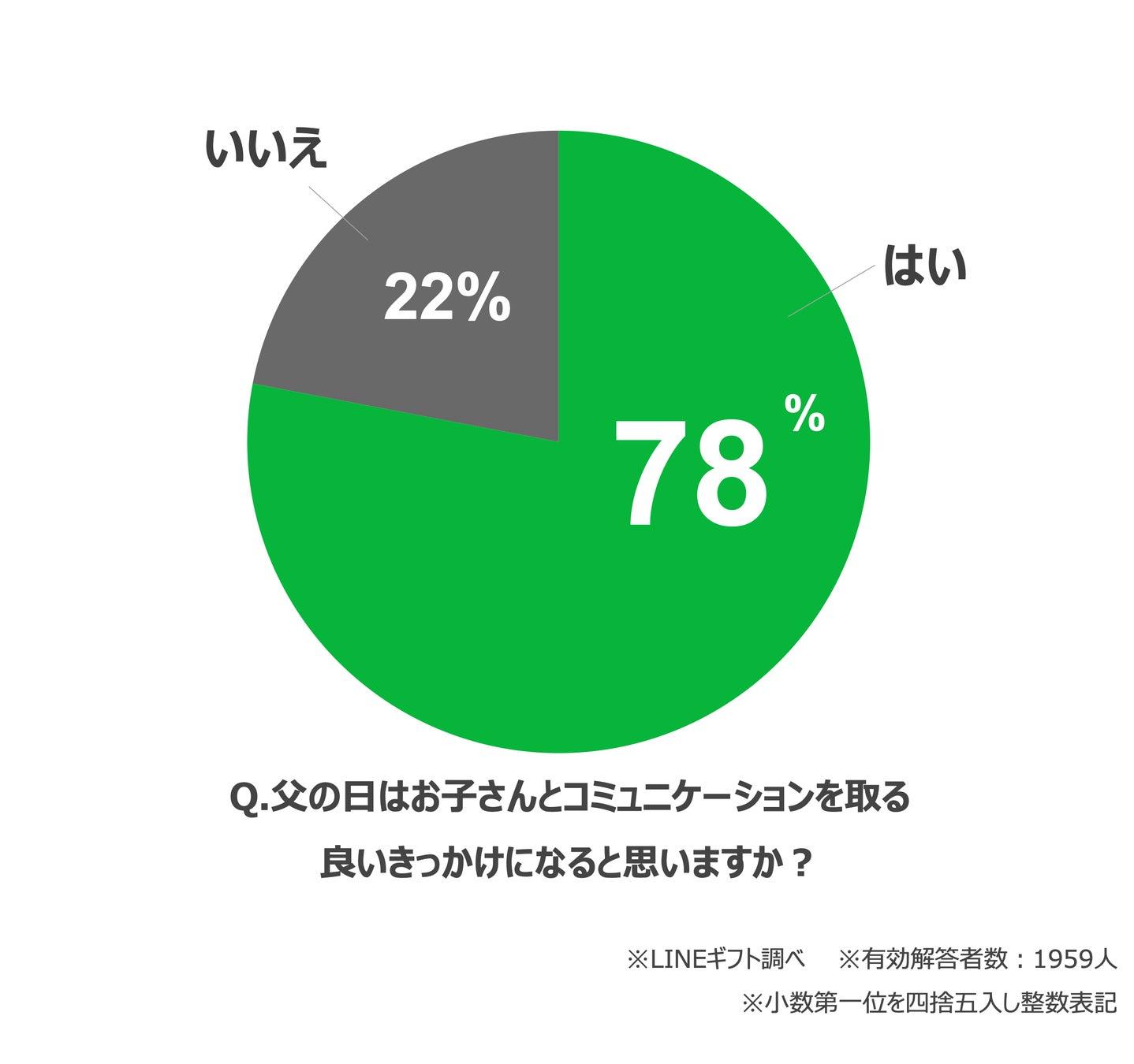 LINEギフトが今年実施した父の日に関するアンケートでは、78%が「父の日はお子さんとコミュニケーションを取る良いきっかけになる」と感じており、91%*のお父さんが「対面に限らず、オンラインで父の日ギフトを貰っても嬉しいと感じる」という結果になりました。