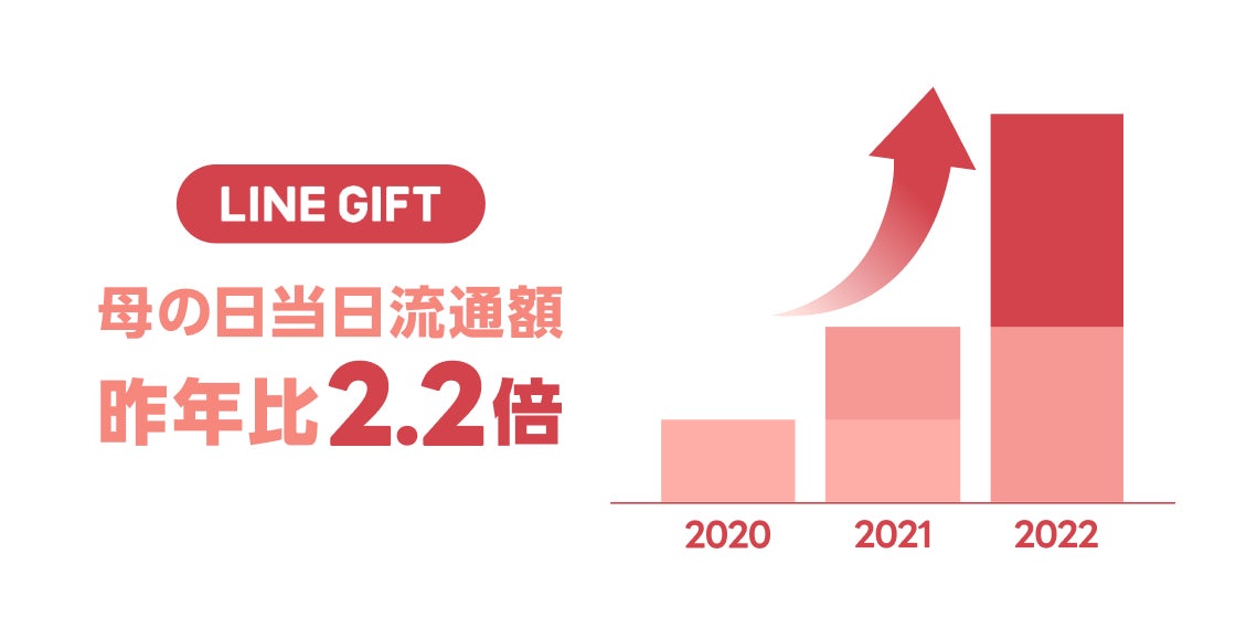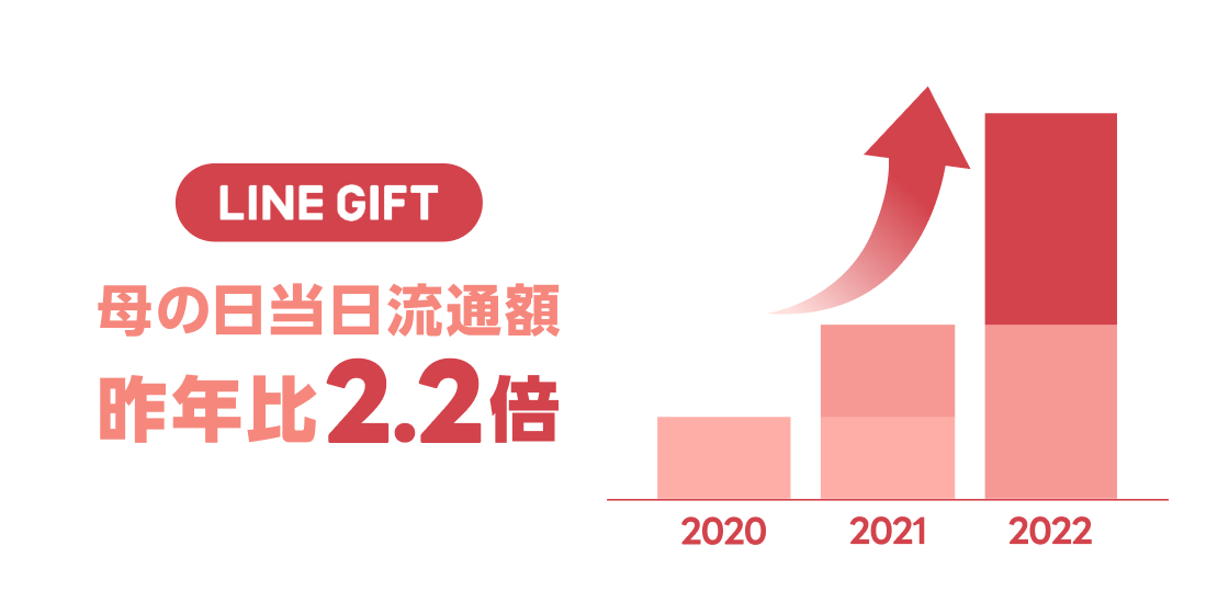 母の日当日の流通額は毎年増加しており、当日でも贈れるというLINEギフトの特性を活かして利用いただいている方が増加していることが推測されます。